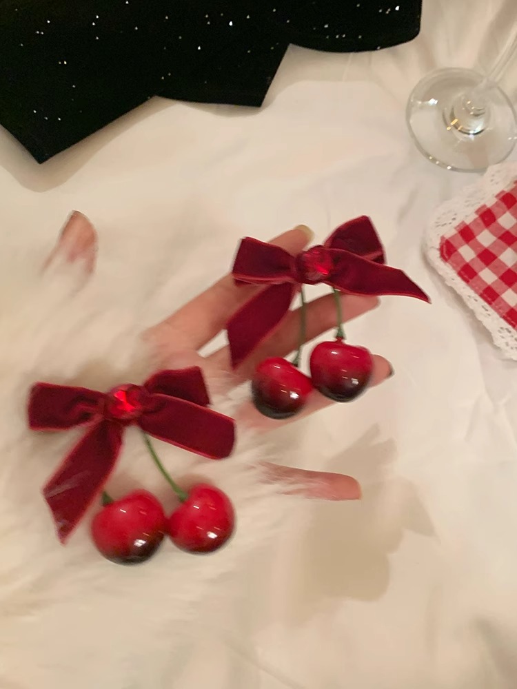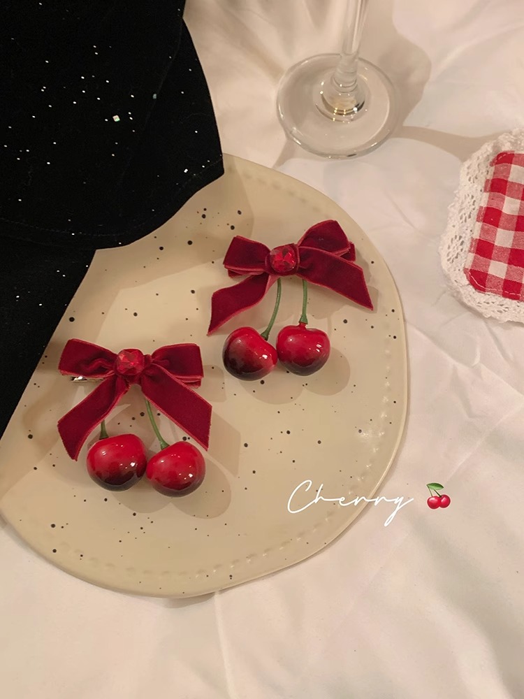 겨울 분위기 붉은 모리 체리 활 벨벳 머리핀 소녀 달콤한 새해 머리핀 귀여운 헤어 액세서리