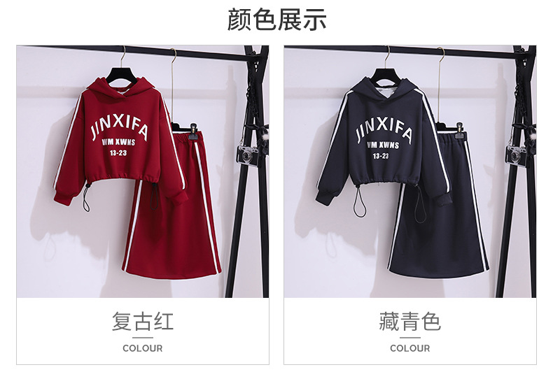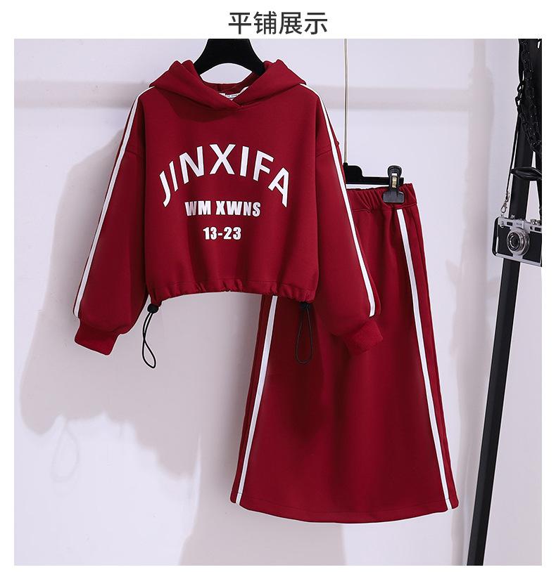 소녀의 땀 세트 봄과 가을 새로운 유행 소녀의 탑 하프 스커트 투피스 가을 세트스토어 가기