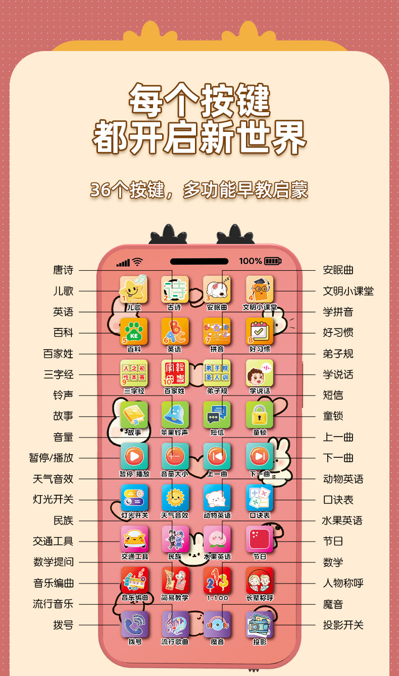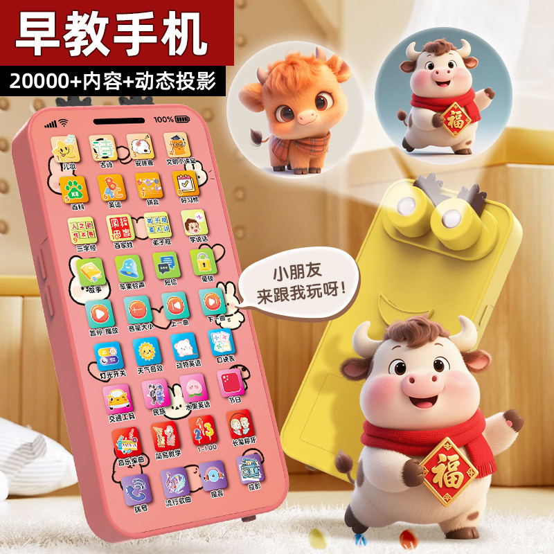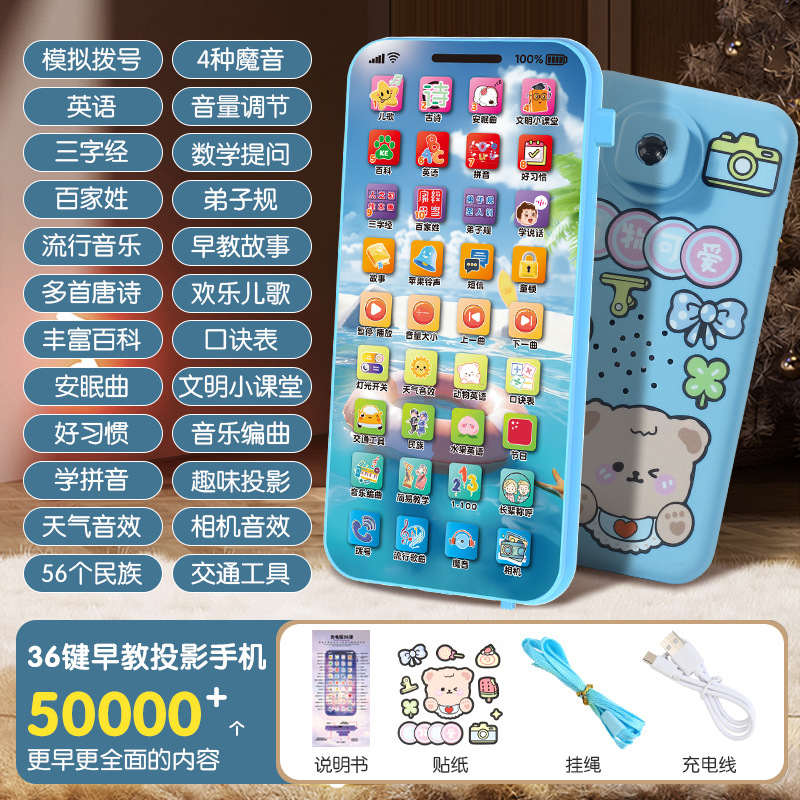 새해 선물 어린이 휴대 전화 장난감 소년과 소녀 생일 선물 프로젝터 장난감 만화 모델 조기 교육 음악스토어 가기