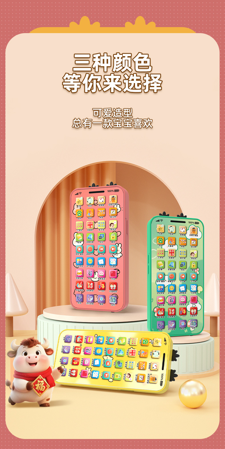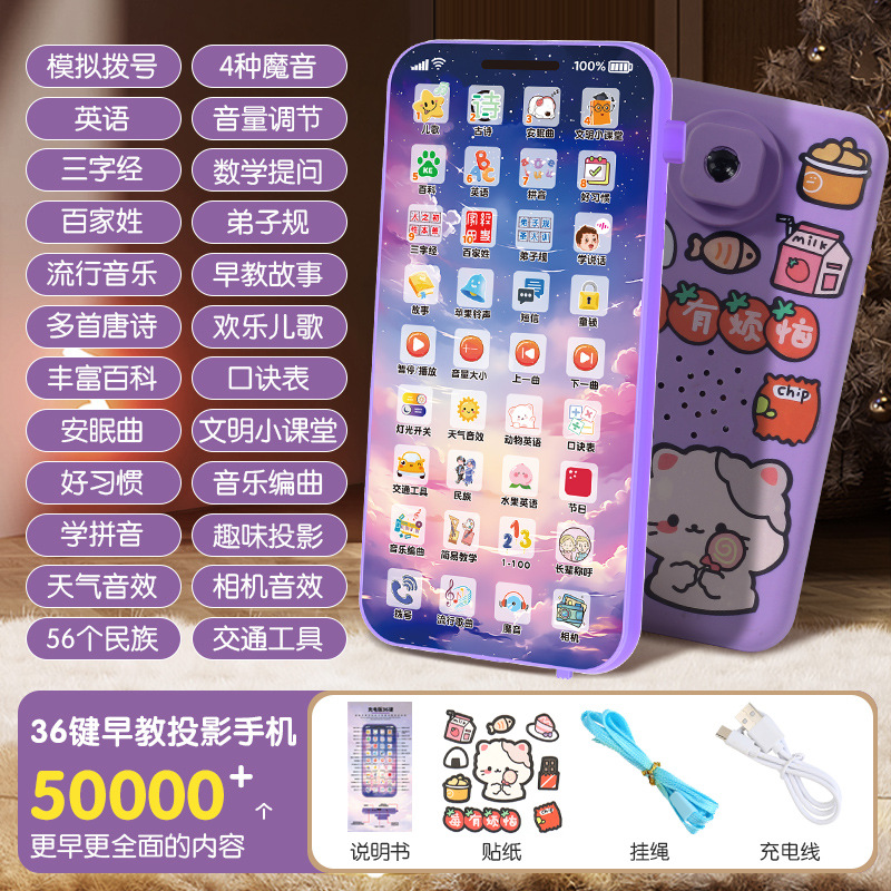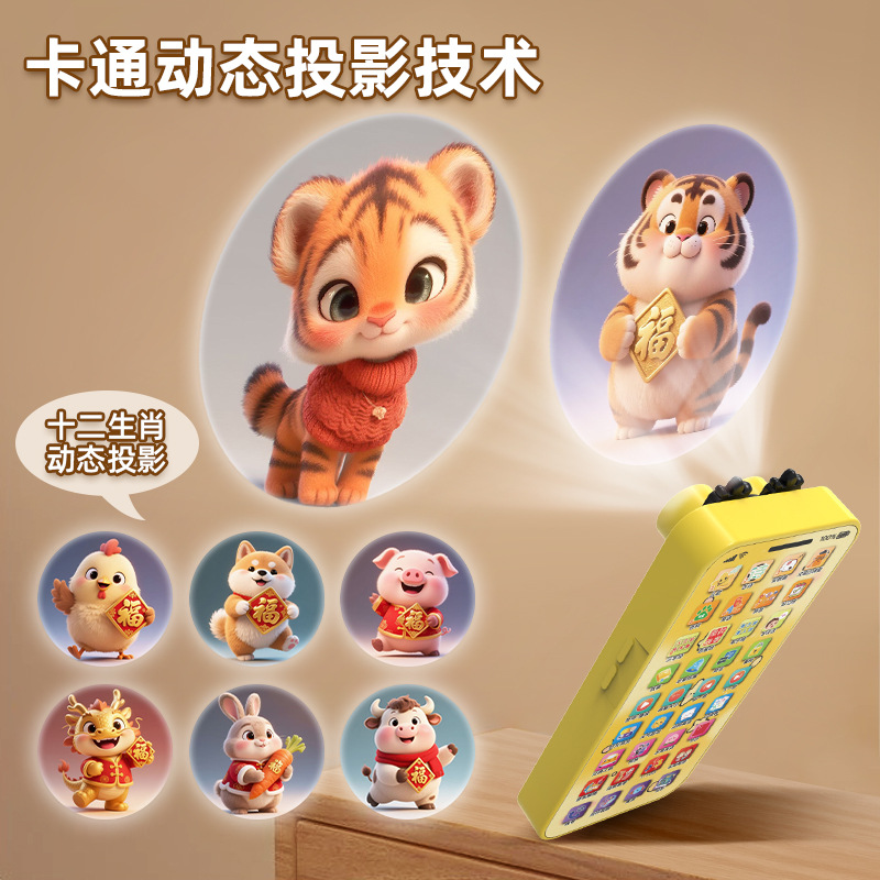새해 선물 어린이 휴대 전화 장난감 소년과 소녀 생일 선물 프로젝터 장난감 만화 모델 조기 교육 음악