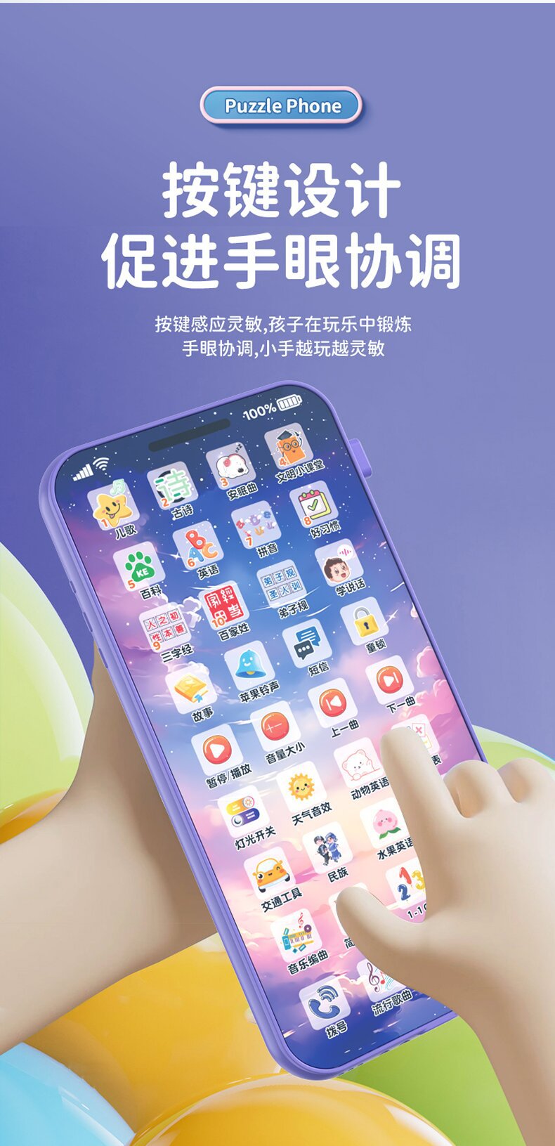 충전식 시뮬레이션 터치 스크린 휴대 전화 장난감 아기 교육 조기 교육 전화 햄스터 게임 기계 논리