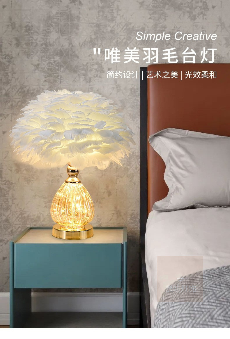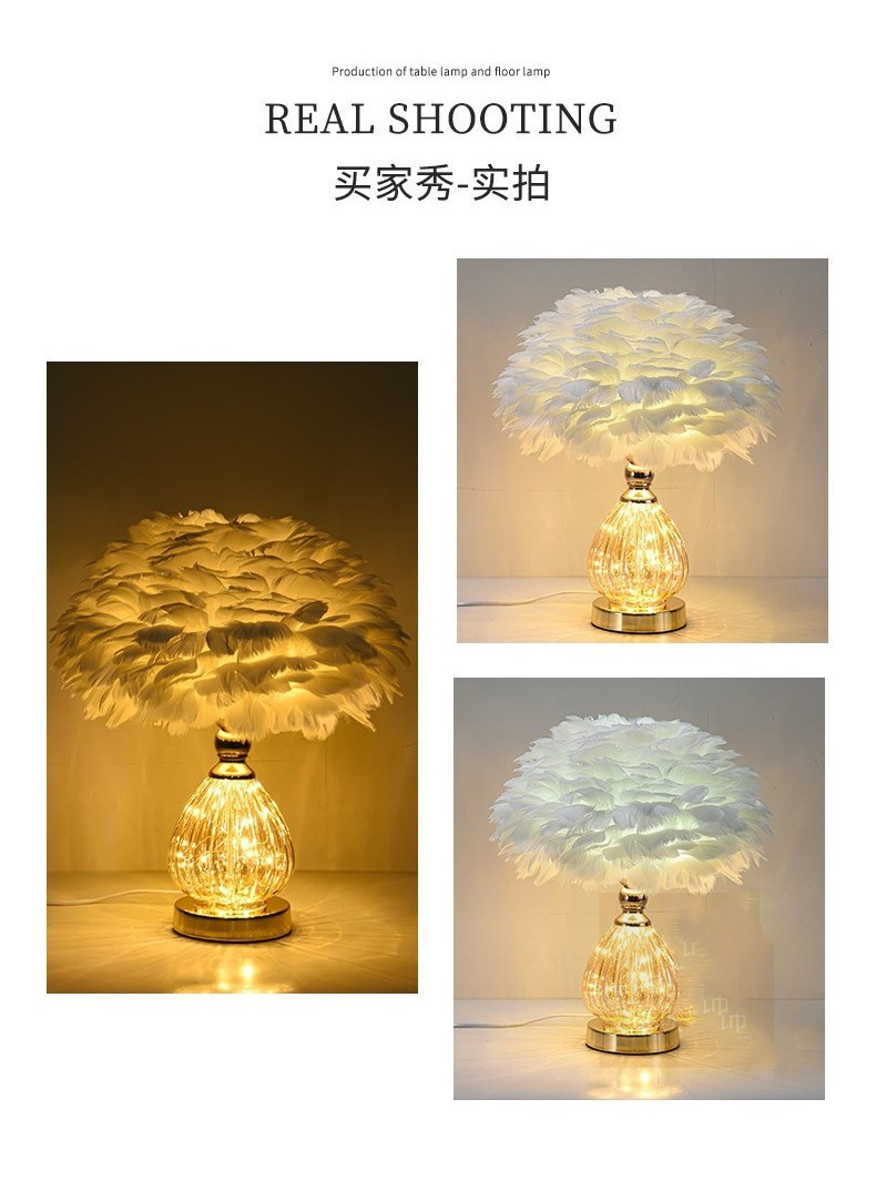 국경 깃털 테이블 램프 침실 원격 제어 침대 옆 램프 간단한 낭만적 인 결혼식 방 분위기 북유럽 소녀 그물 붉은 빛스토어 가기