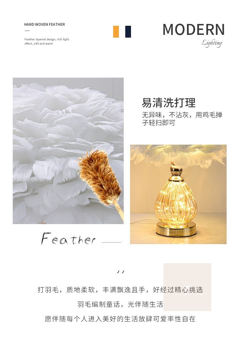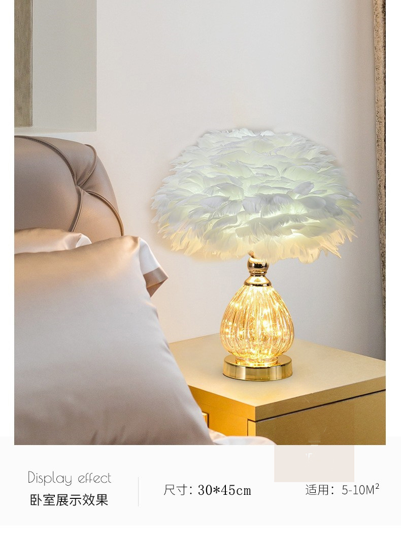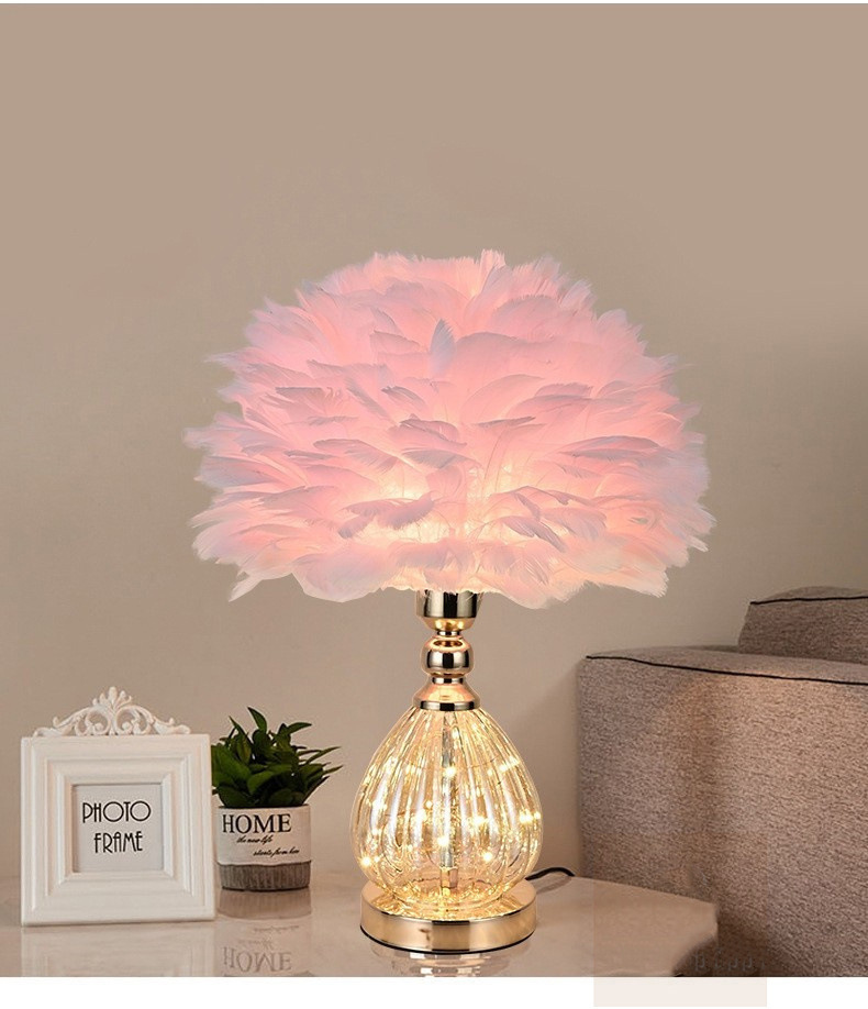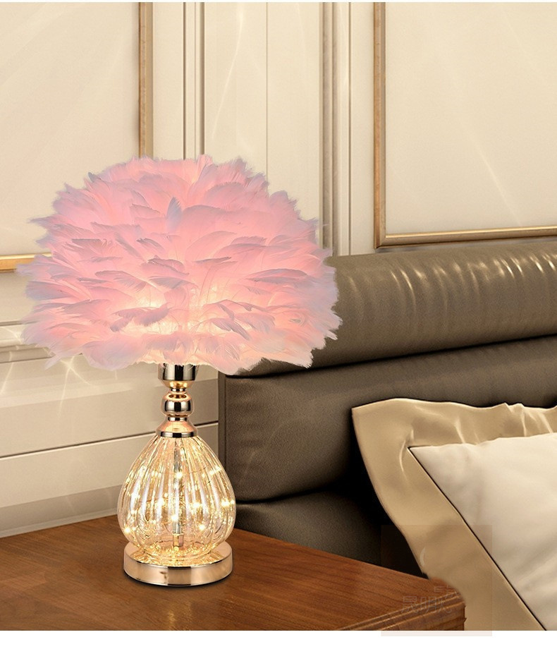 국경 깃털 테이블 램프 침실 원격 제어 침대 옆 램프 간단한 낭만적 인 결혼식 방 분위기 북유럽 소녀 그물 붉은 빛