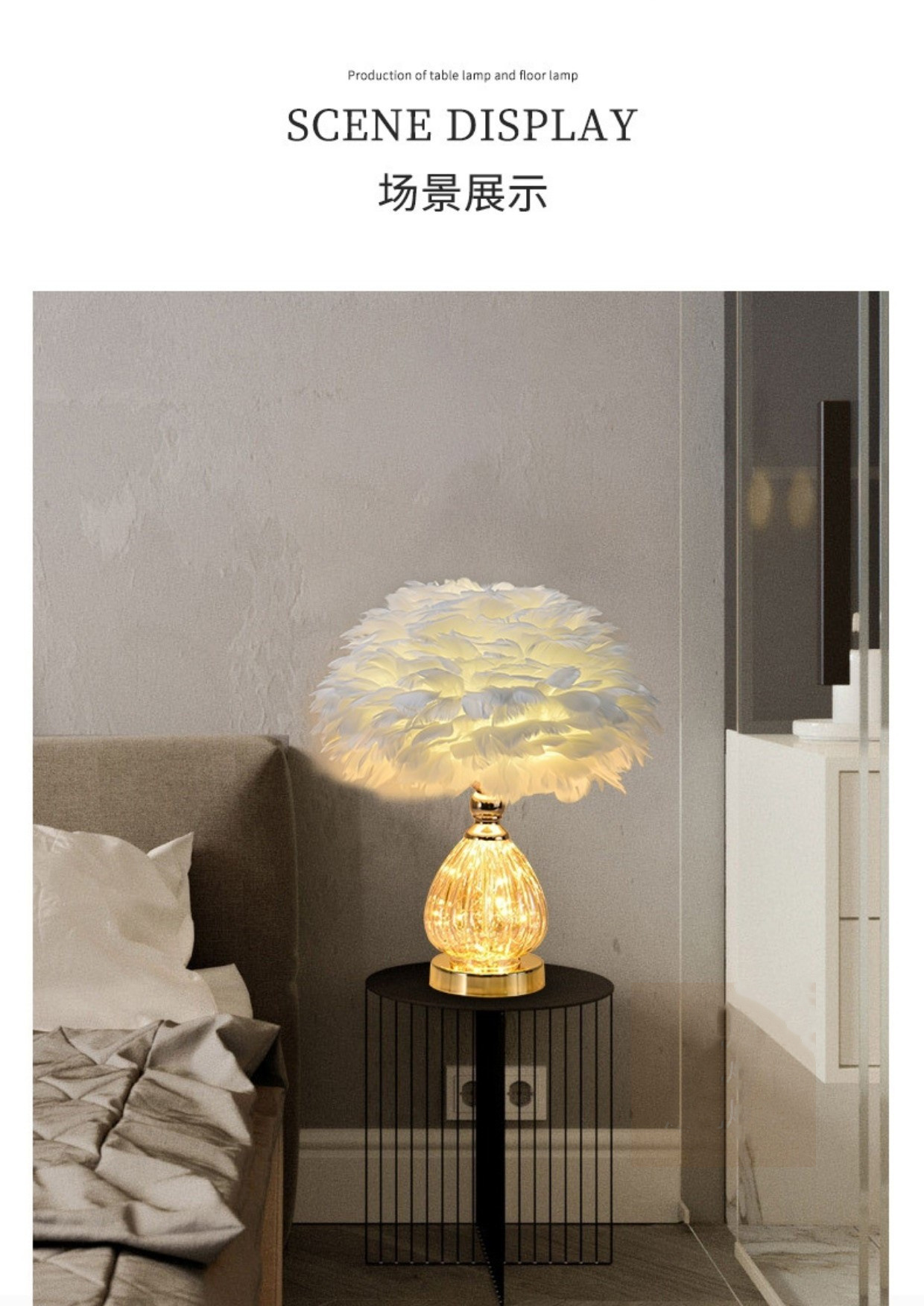 • 유리 램프 홀더 + 프랑스 금 + 회색 깃털