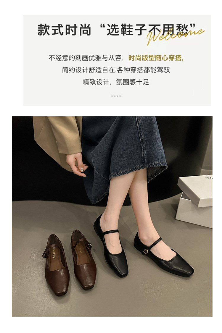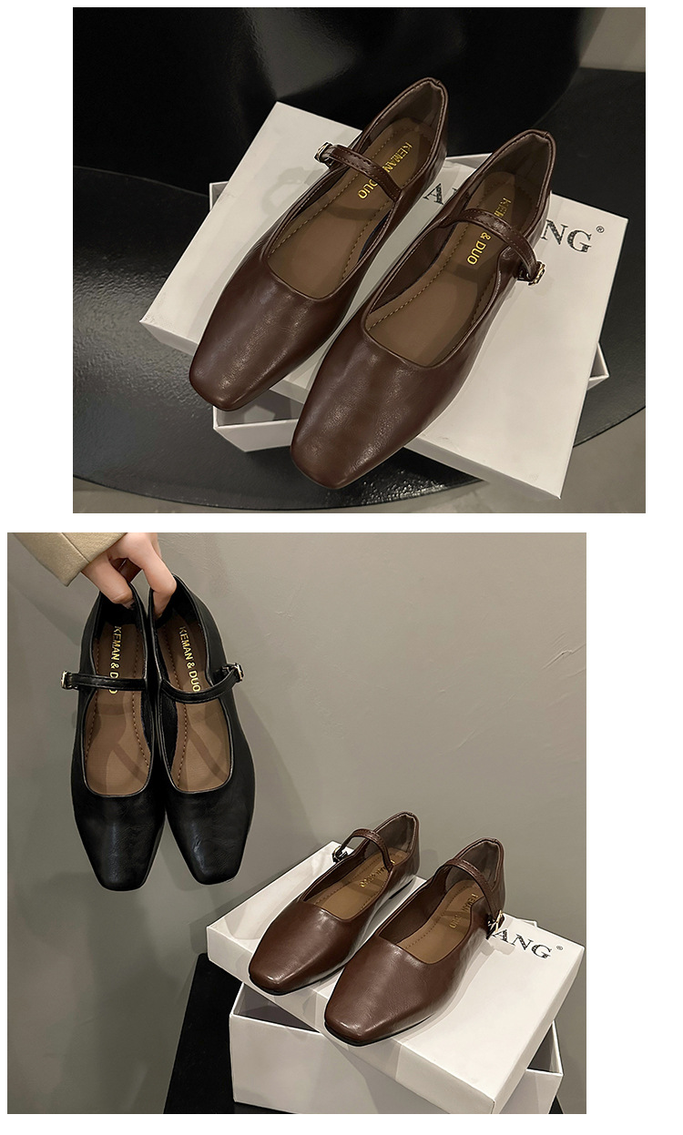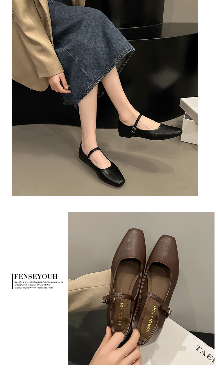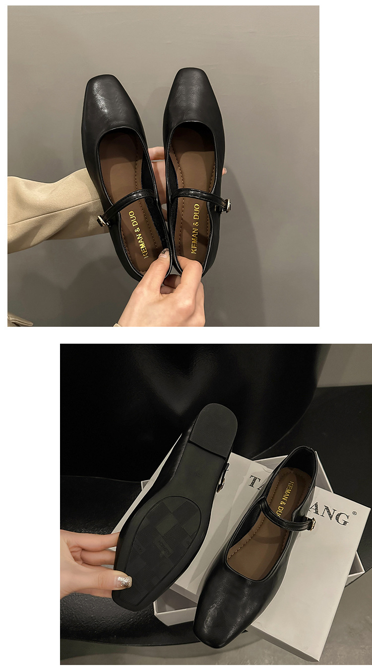 프랑스 이브닝 스타일 통근 싱글 레이어 신발 2024 새로운 봄과 가을 한국 스타일 요정 청키 힐 메리 제인 가죽 신발 싱글 레이어 신발스토어 가기