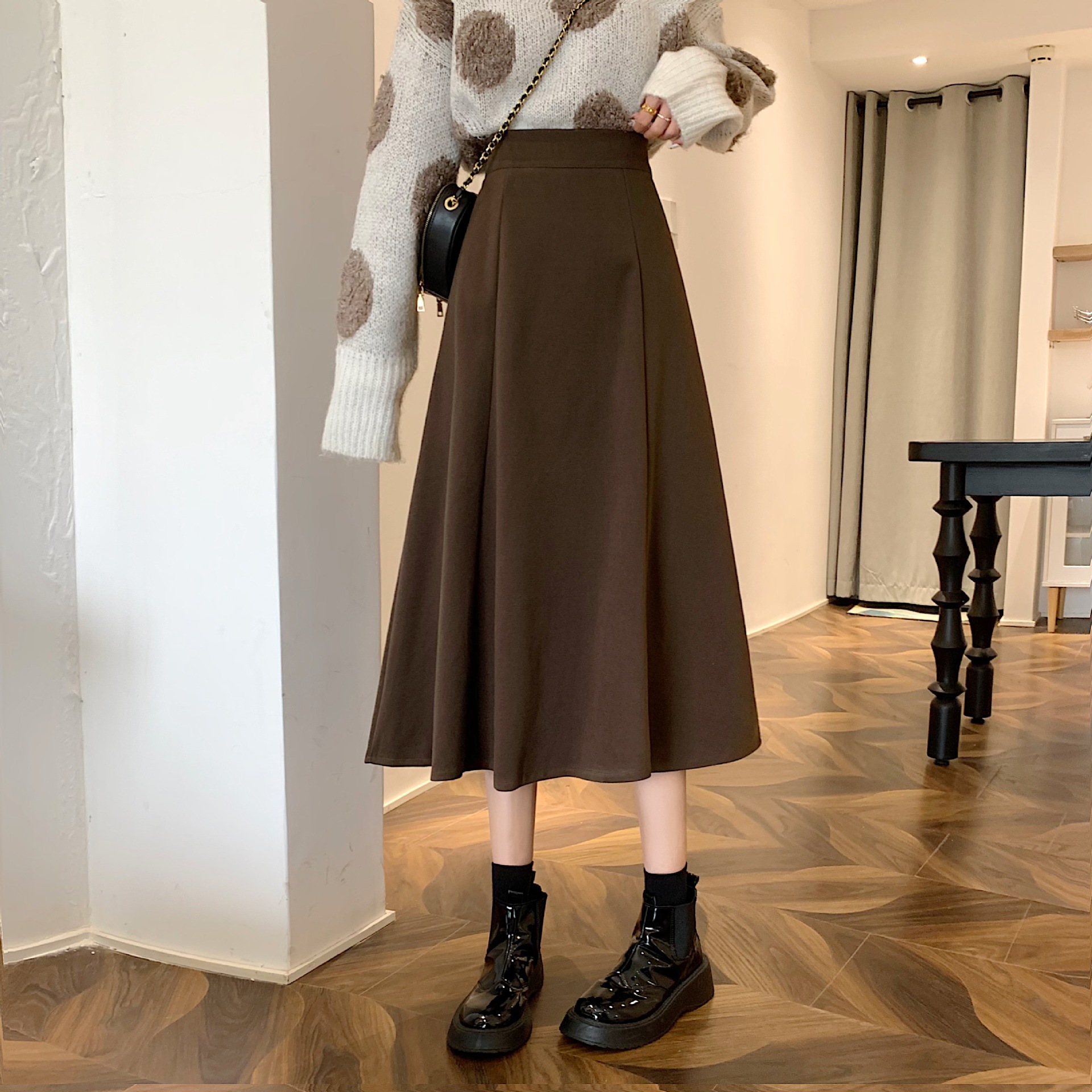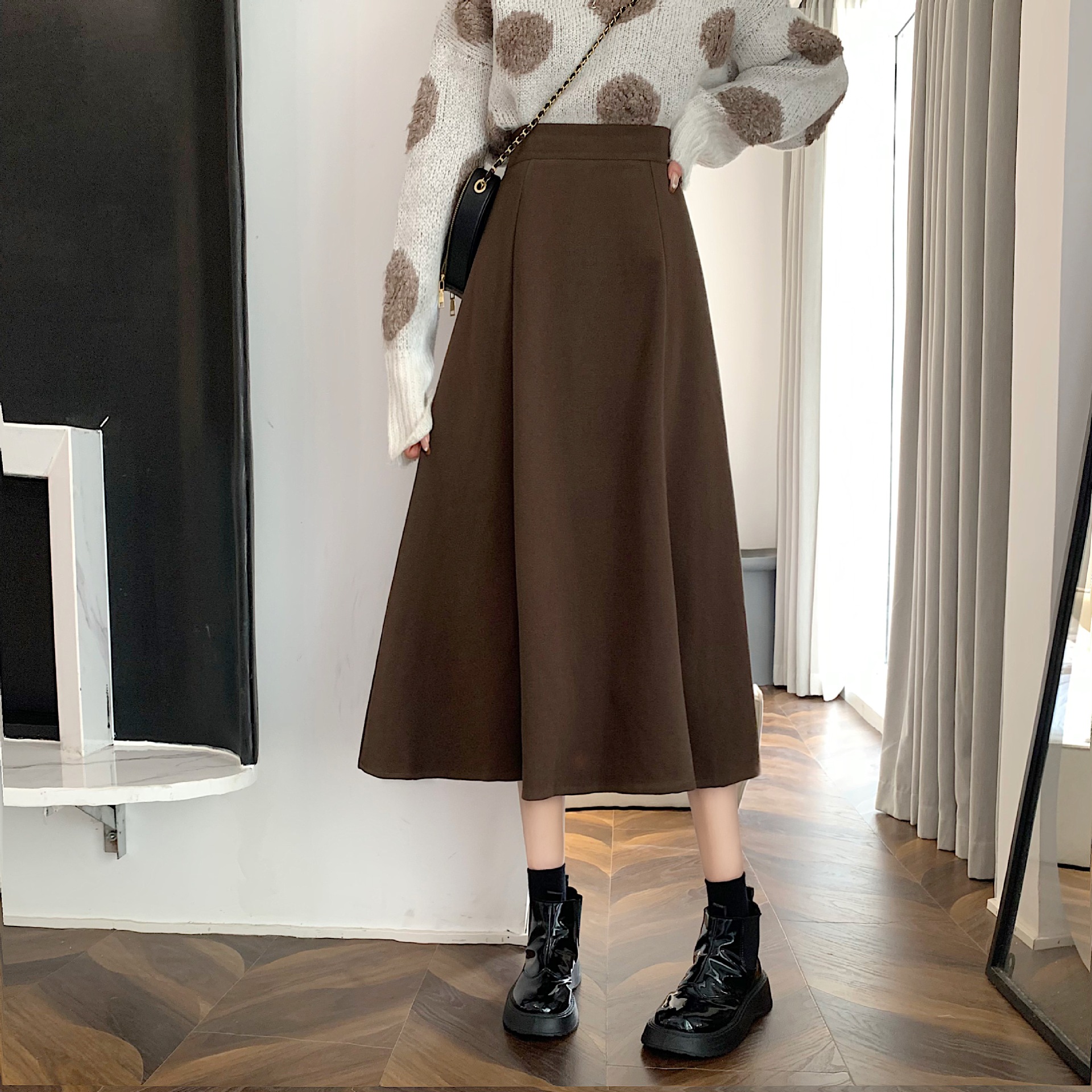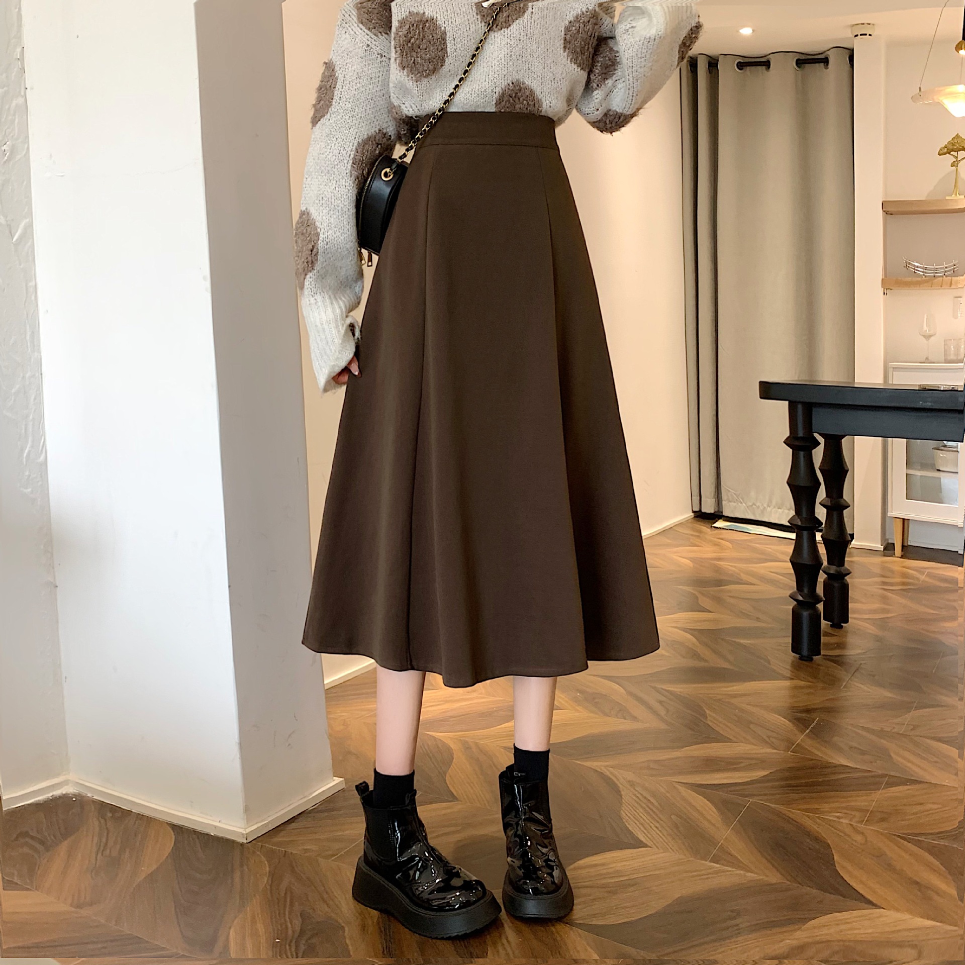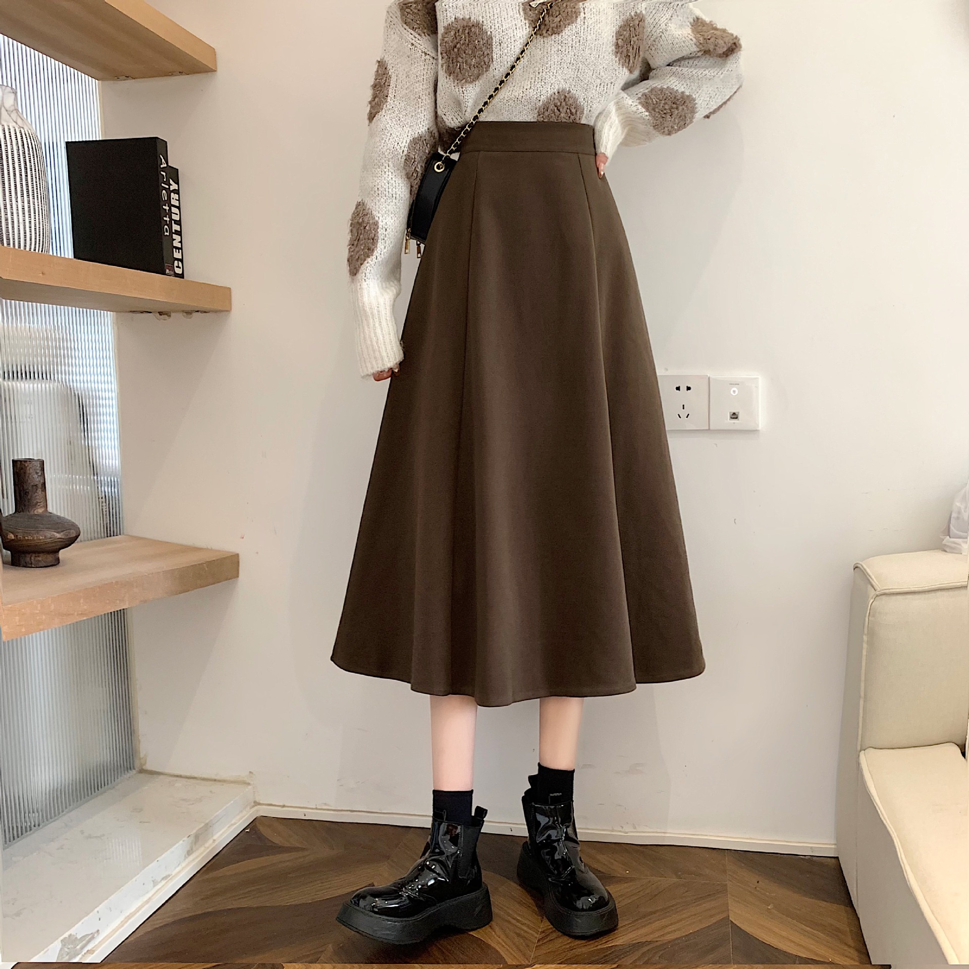 다크 브라운 스커트 여성의 2024 봄과 가을 중간 길이 높은 허리 작은 가을과 겨울 새로운 A 라인 주름 두꺼운 우산 스커트스토어 가기