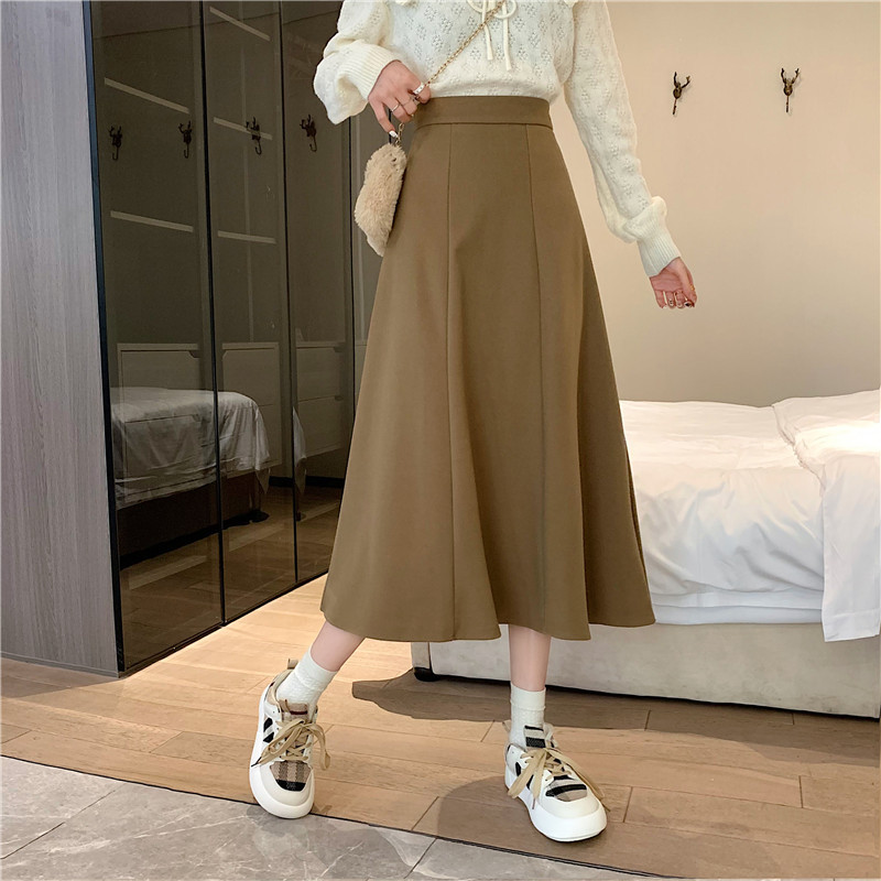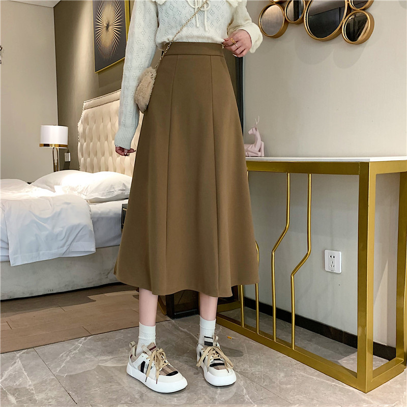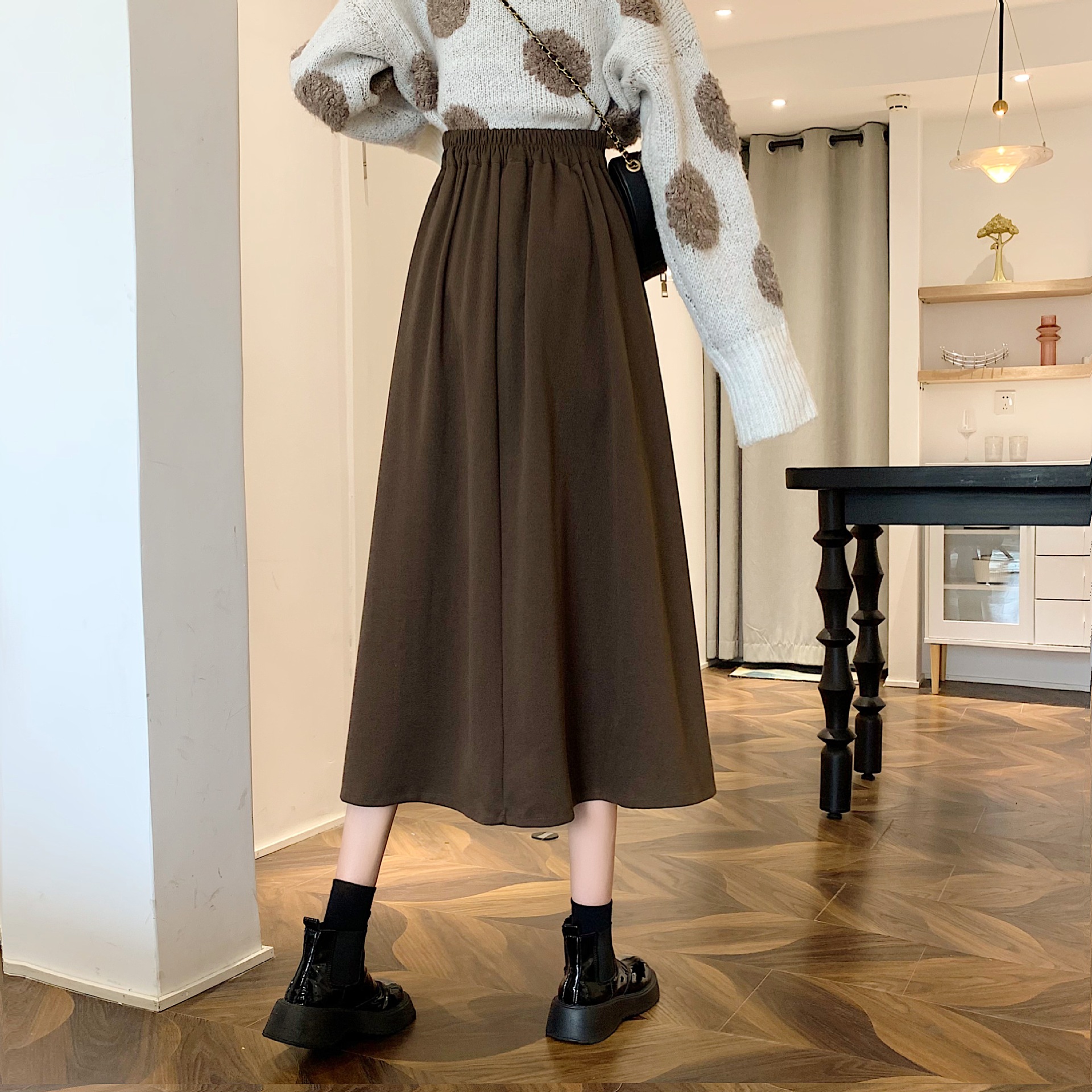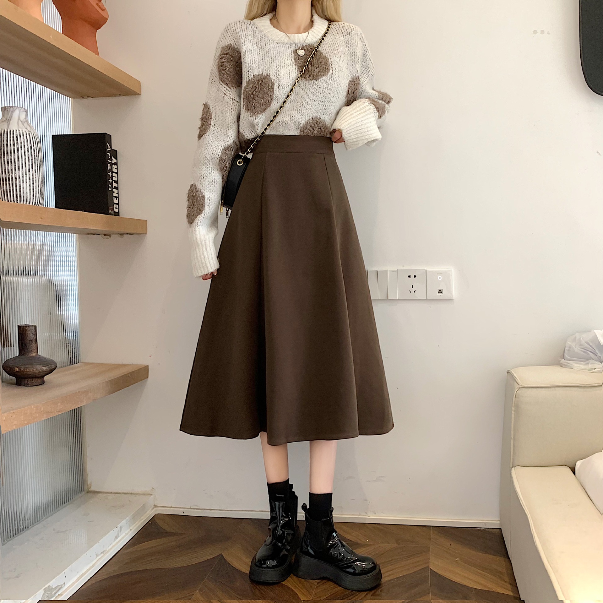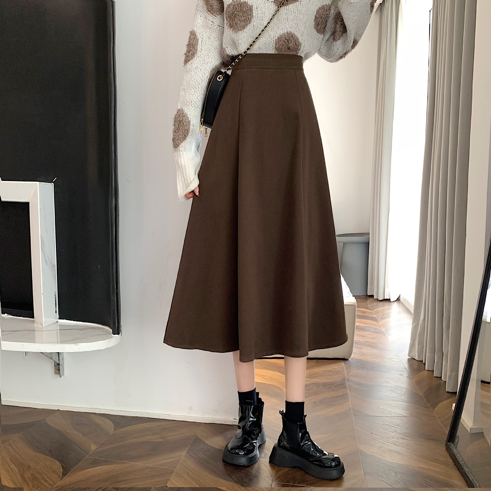 다크 브라운 스커트 여성의 2024 봄과 가을 중간 길이 높은 허리 작은 가을과 겨울 새로운 A 라인 주름 두꺼운 우산 스커트스토어 가기