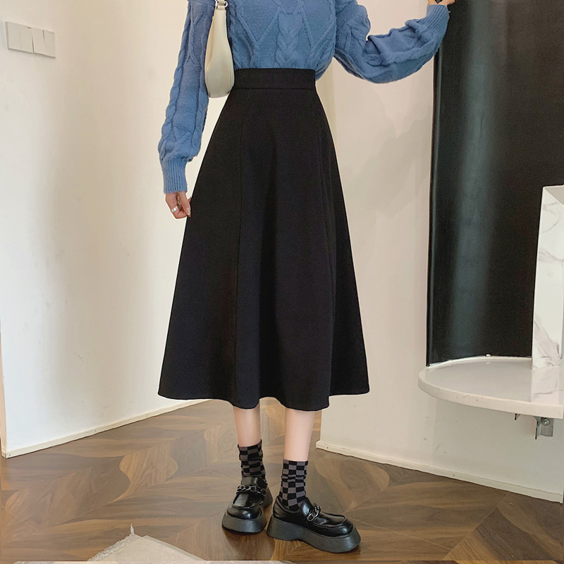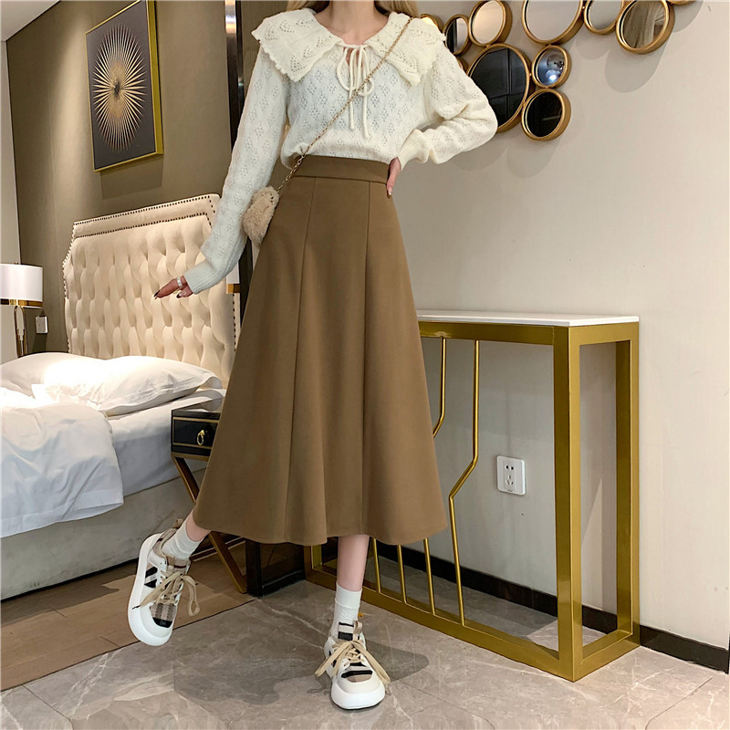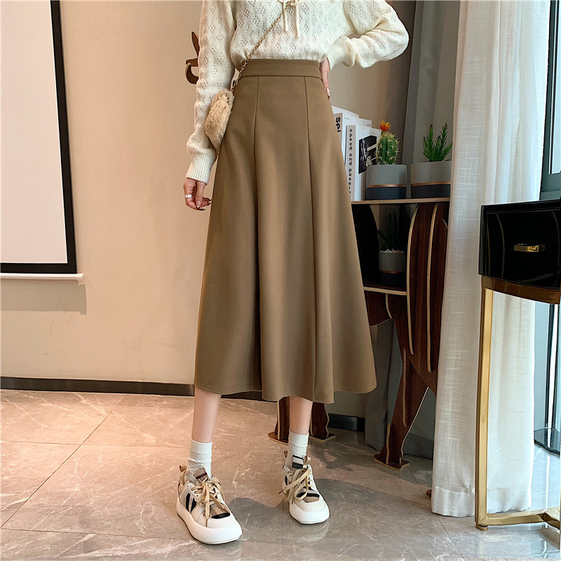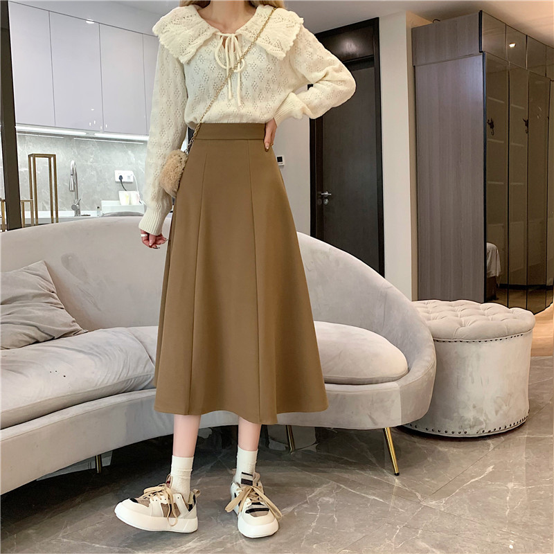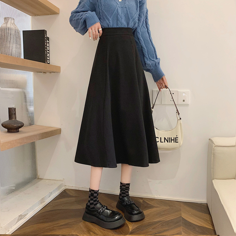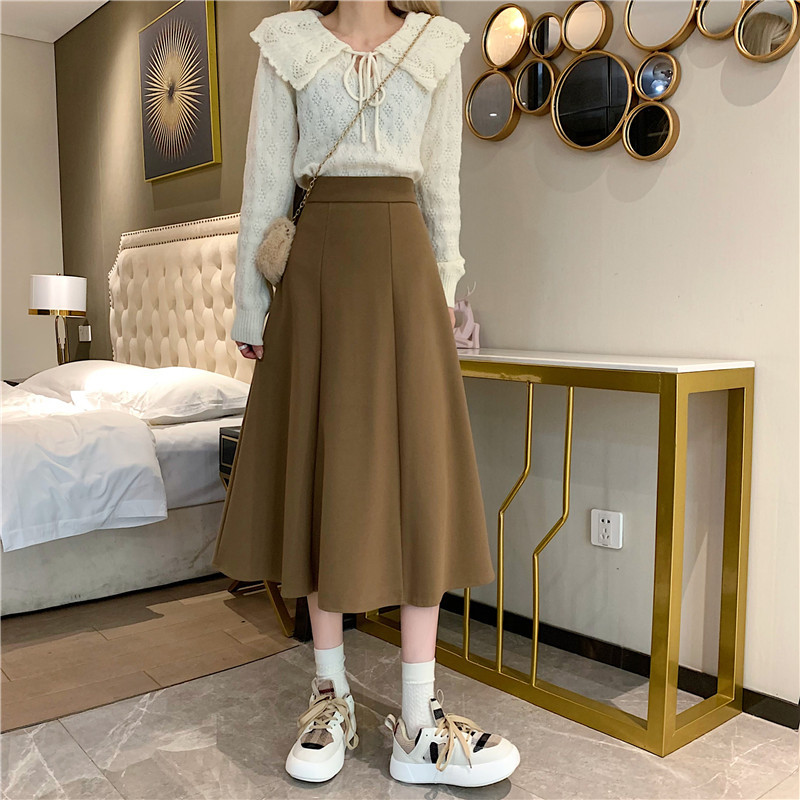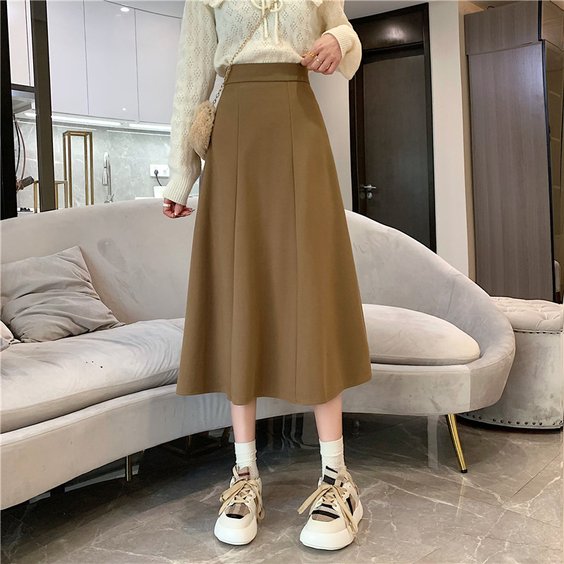 다크 브라운 스커트 여성의 2024 봄과 가을 중간 길이 높은 허리 작은 가을과 겨울 새로운 A 라인 주름 두꺼운 우산 스커트스토어 가기