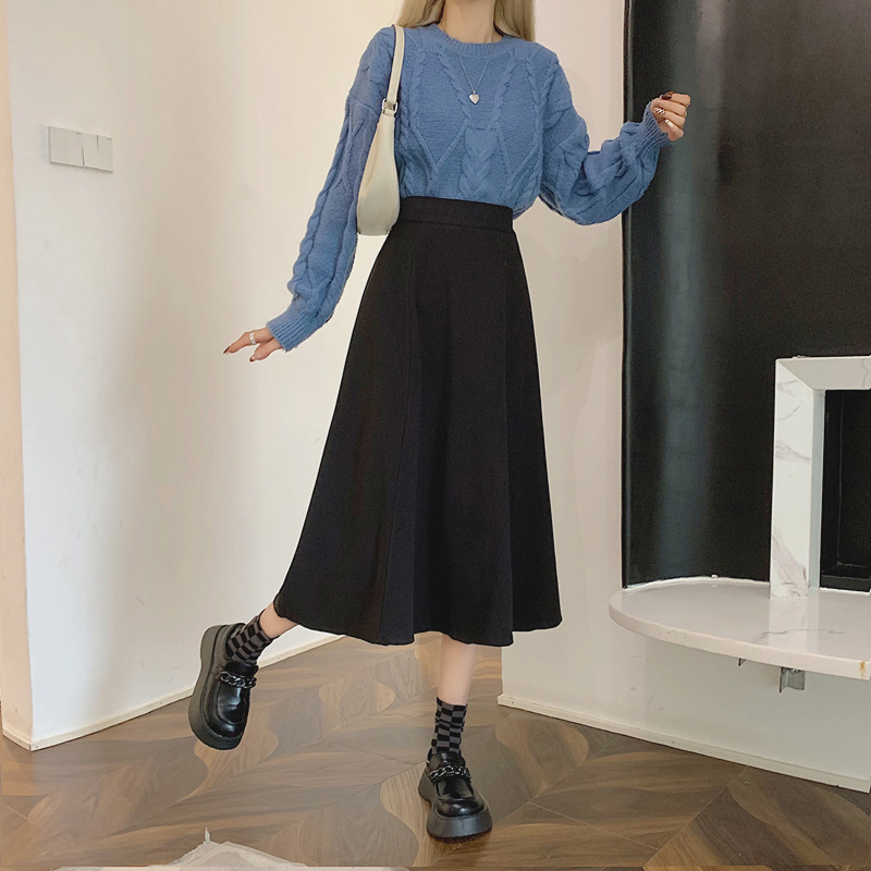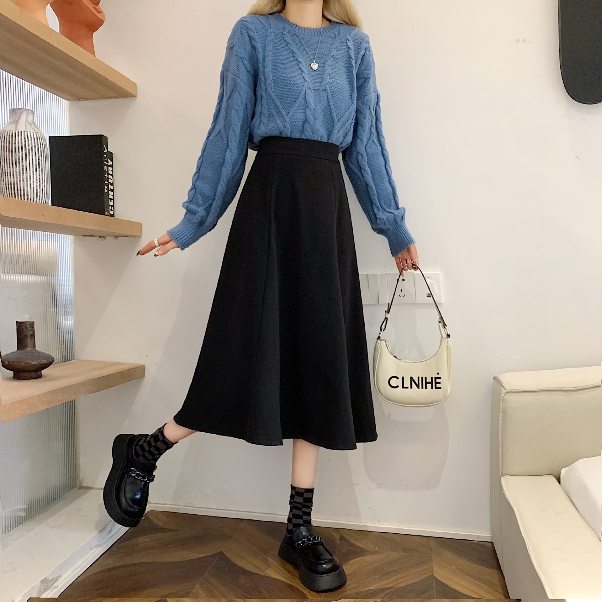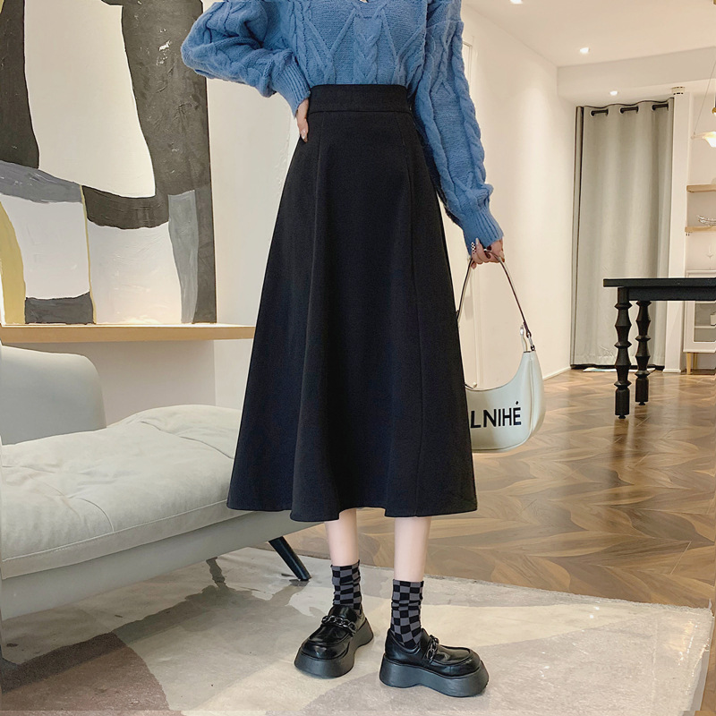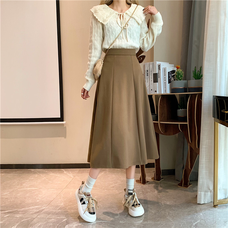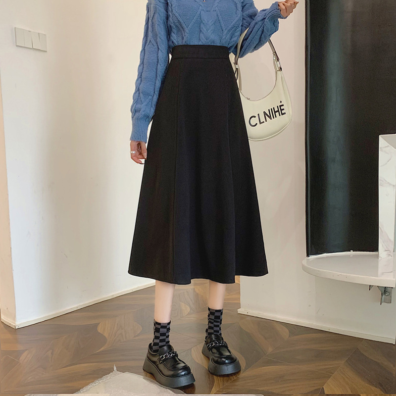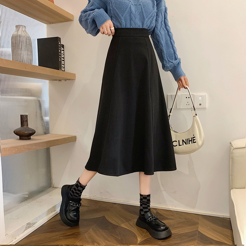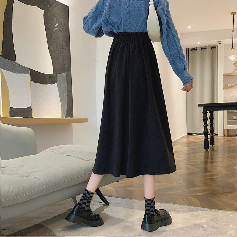다크 브라운 스커트 여성의 2024 봄과 가을 중간 길이 높은 허리 작은 가을과 겨울 새로운 A 라인 주름 두꺼운 우산 스커트스토어 가기