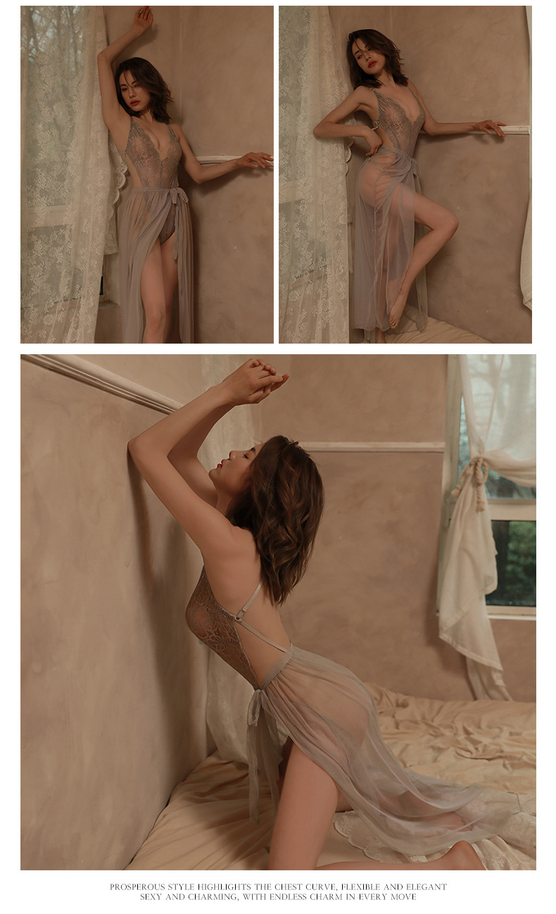 Liangai 유럽과 미국의 새로운 섹시한 란제리 여성의 섹시한 레이스 점프 수트 메쉬 매혹적인 스커트 파자마 세트스토어 가기