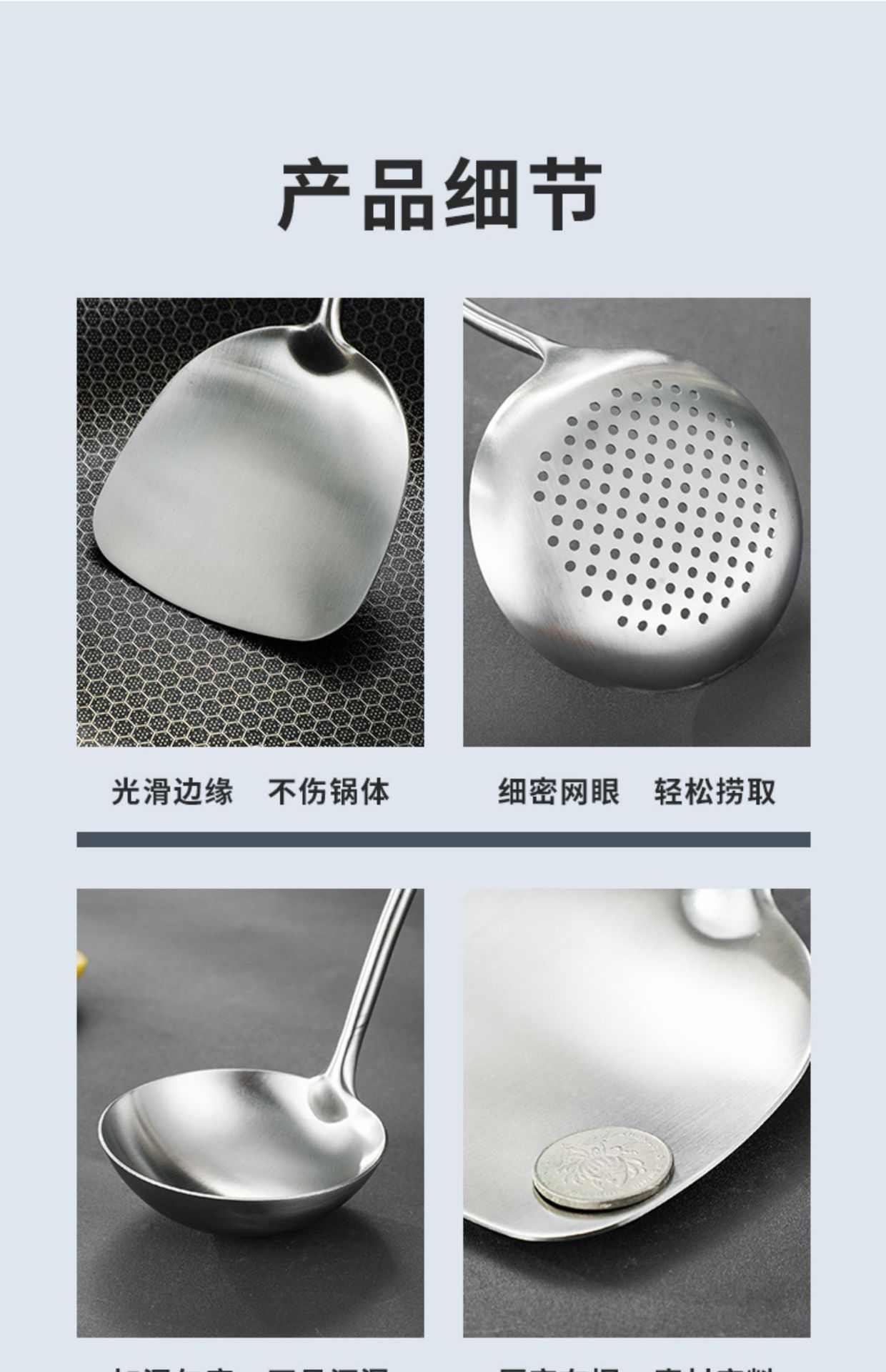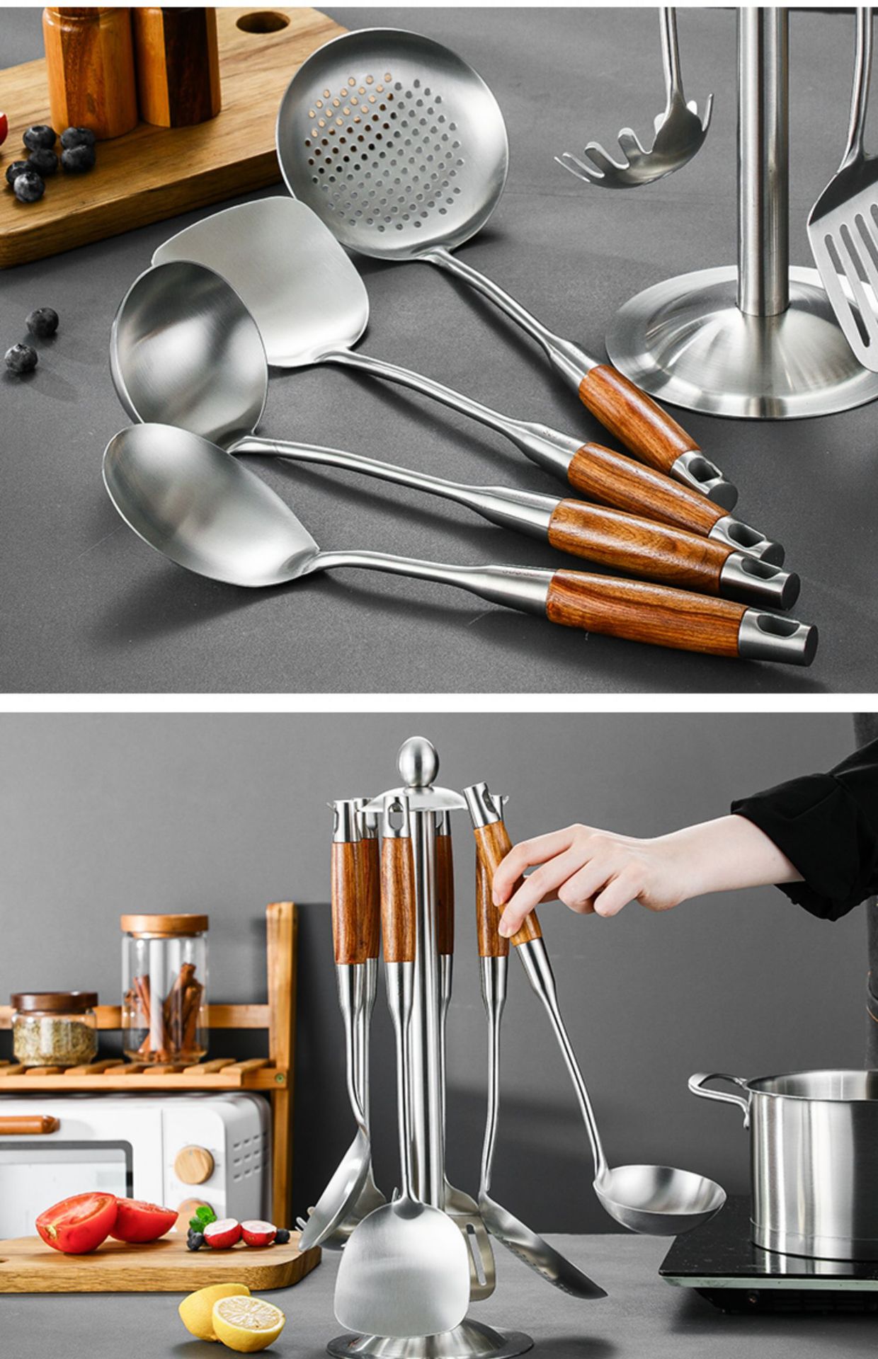 304 히노키 나무 스테인리스 주걱 및 국자 가정용 주방 조리 도구 세트스토어 가기