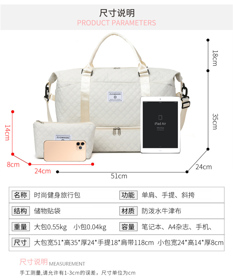 여행 가방 한국식 마름모 보관 가방 크로스 바디 휴대용 스포츠 요가 피트니스 가방 대용량 출산 가방