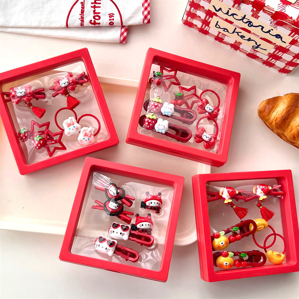 새해 빨간 귀여운 만화 헤어 액세서리 년 스타일 앞머리 클립 사이드 클립 어린이 부러진 머리핀은 머리 머리 장식을 해치지 않습니다 도매스토어 가기