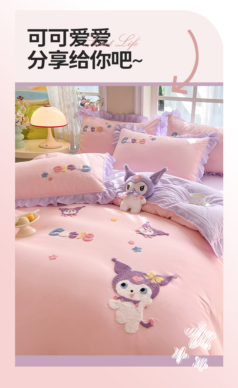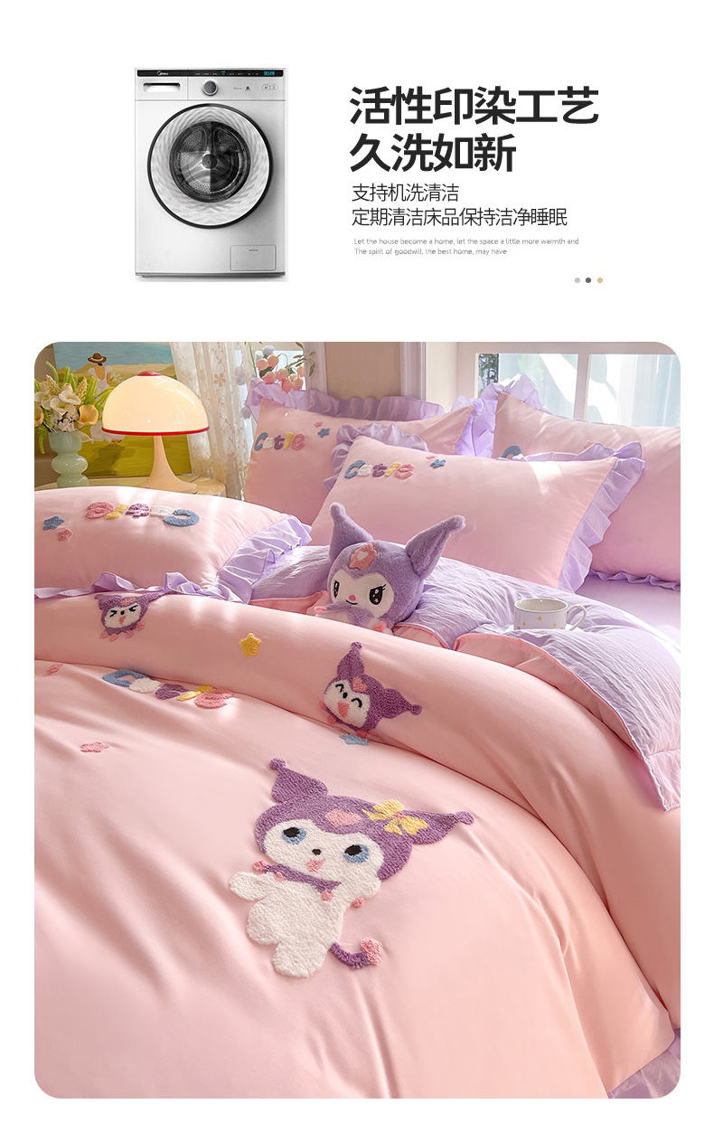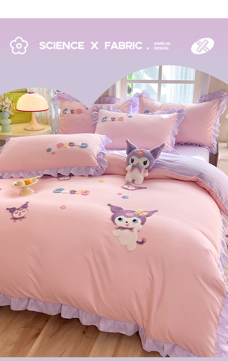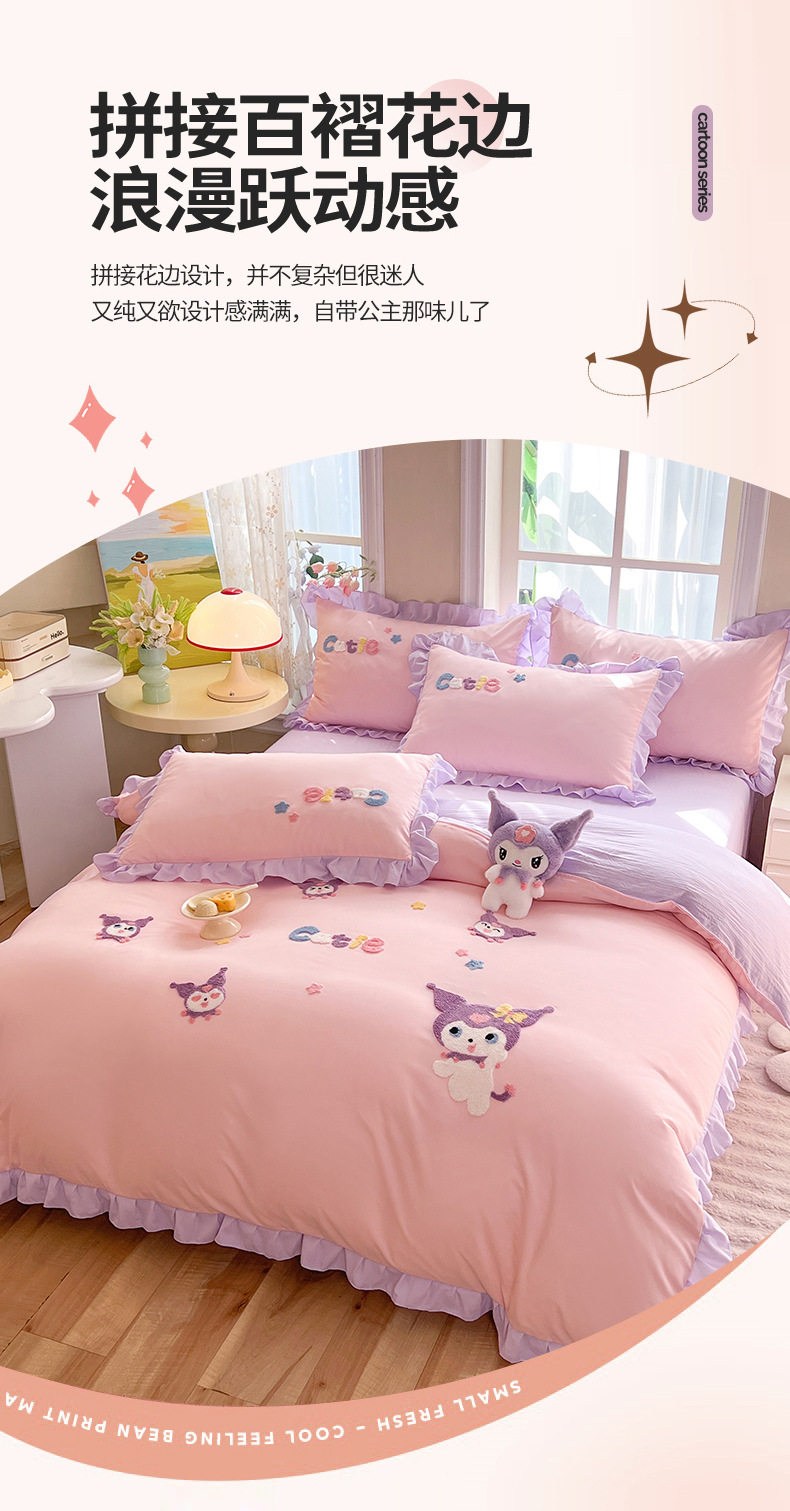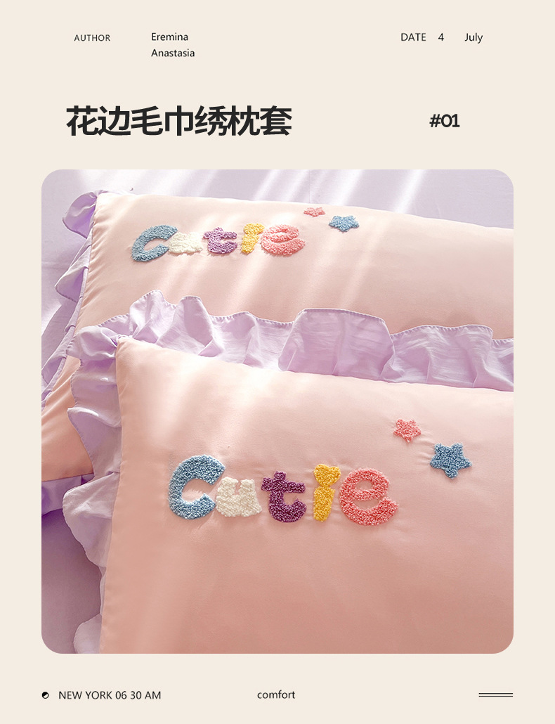 새로운 한국식 레이스 타월 자수 4 피스 어린이 만화 3 피스 코튼 세정면 침대 시트 퀼트 커버