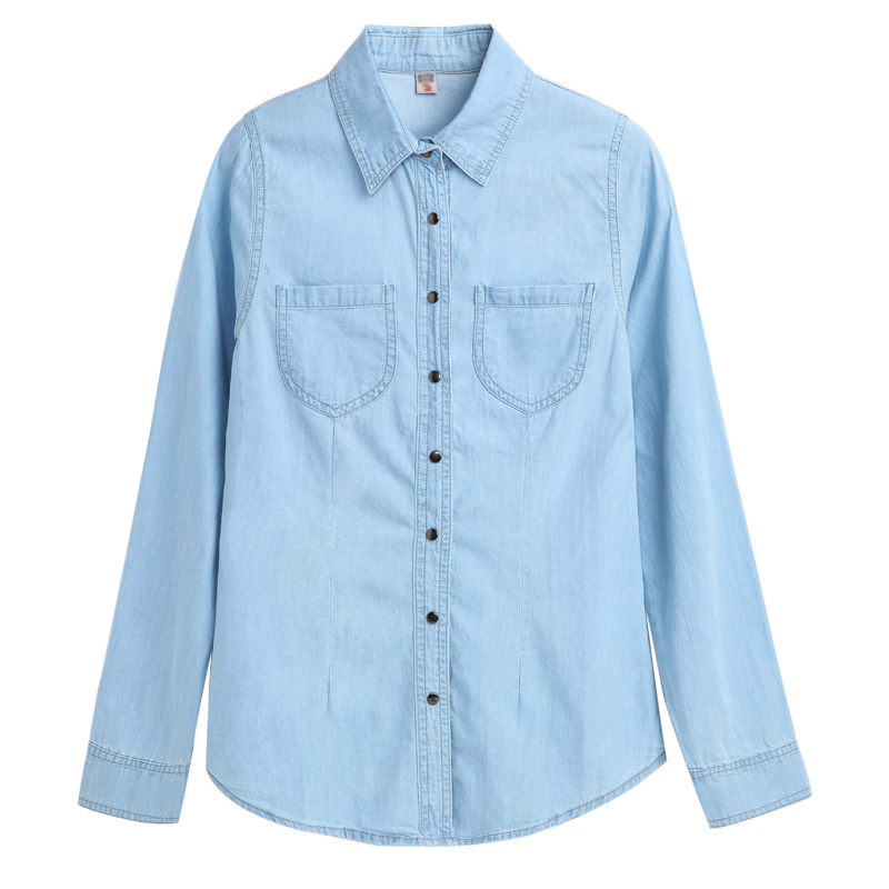 슬림핏 코튼 데님 셔츠 여성용 긴팔 2024 가을과 겨울 슬리밍 올매치 기모 셔츠 새베이스 셔츠스토어 가기