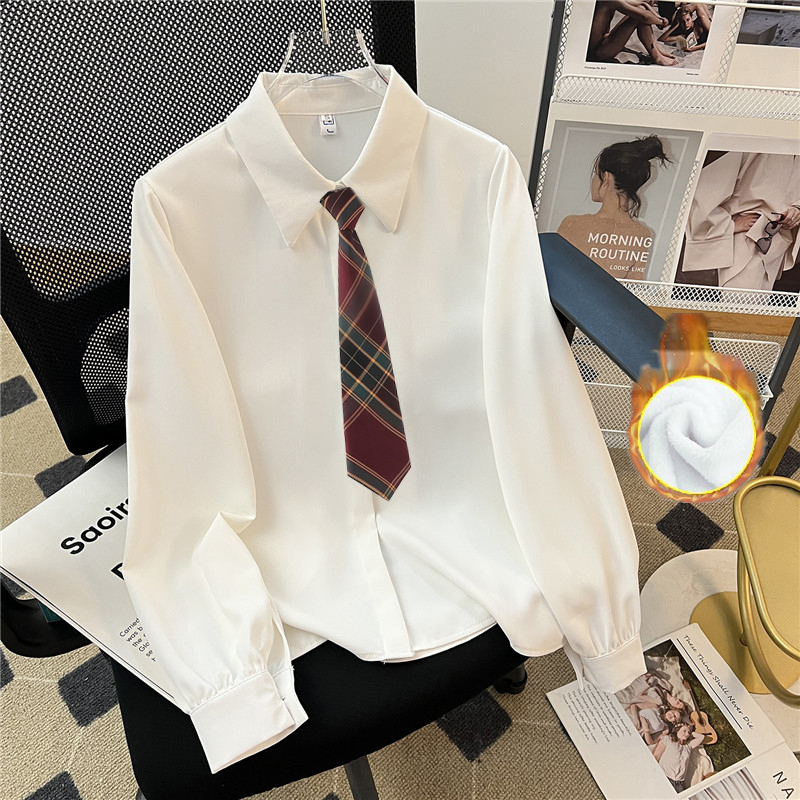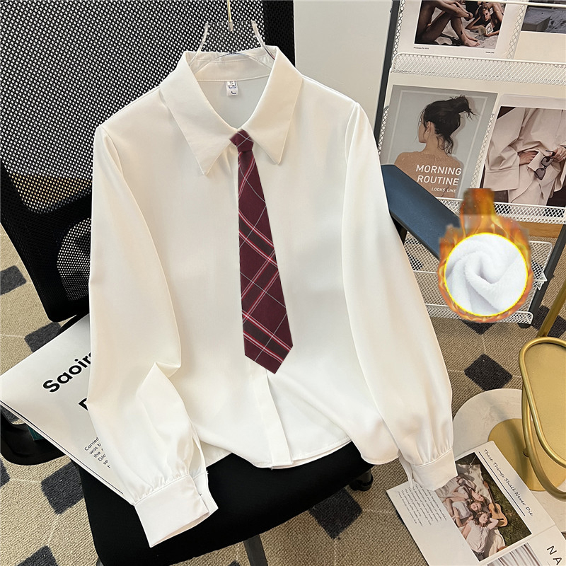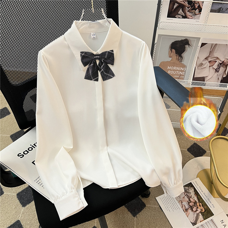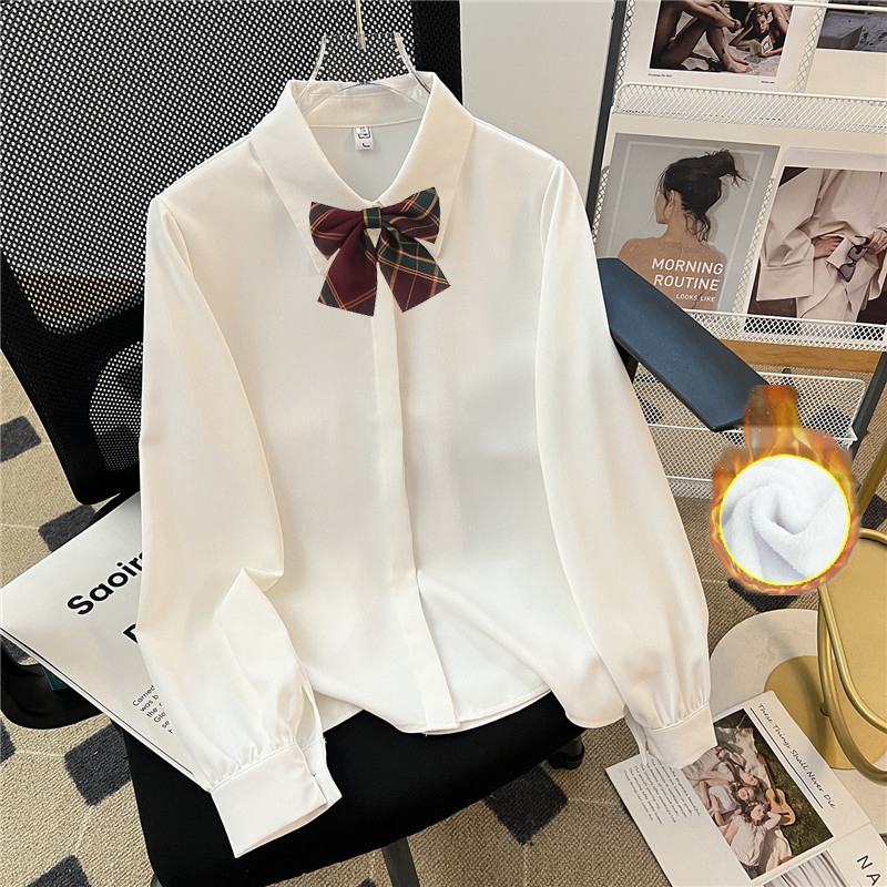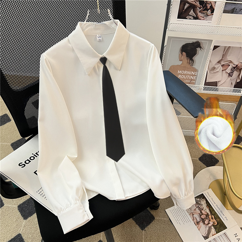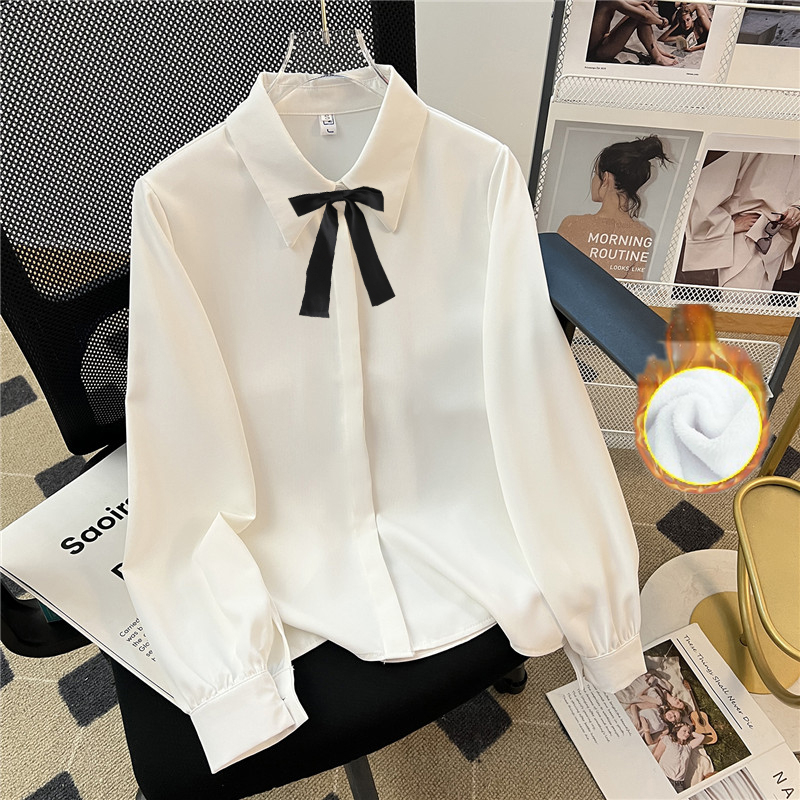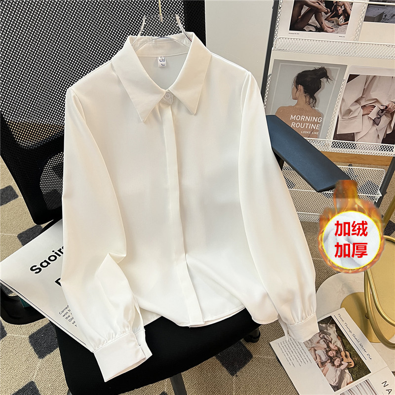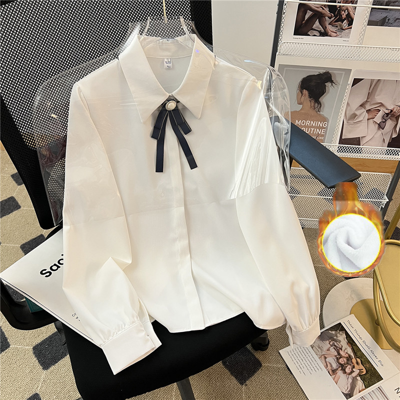 화이트 셔츠 여성 전문 긴팔 봄, 가을, 겨울 24 새로운 쉬폰 인터뷰 공식 셔츠 바지 기모 탑스토어 가기