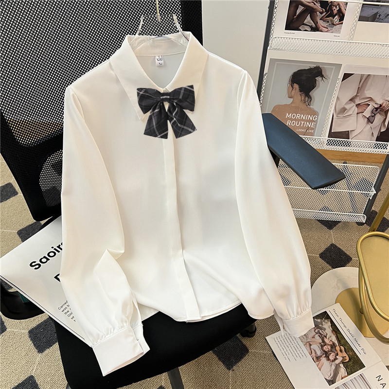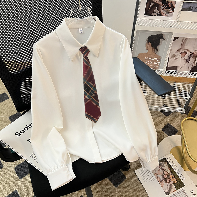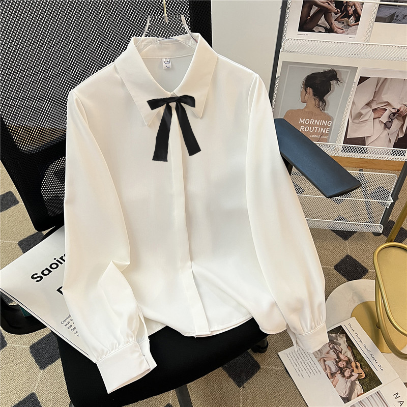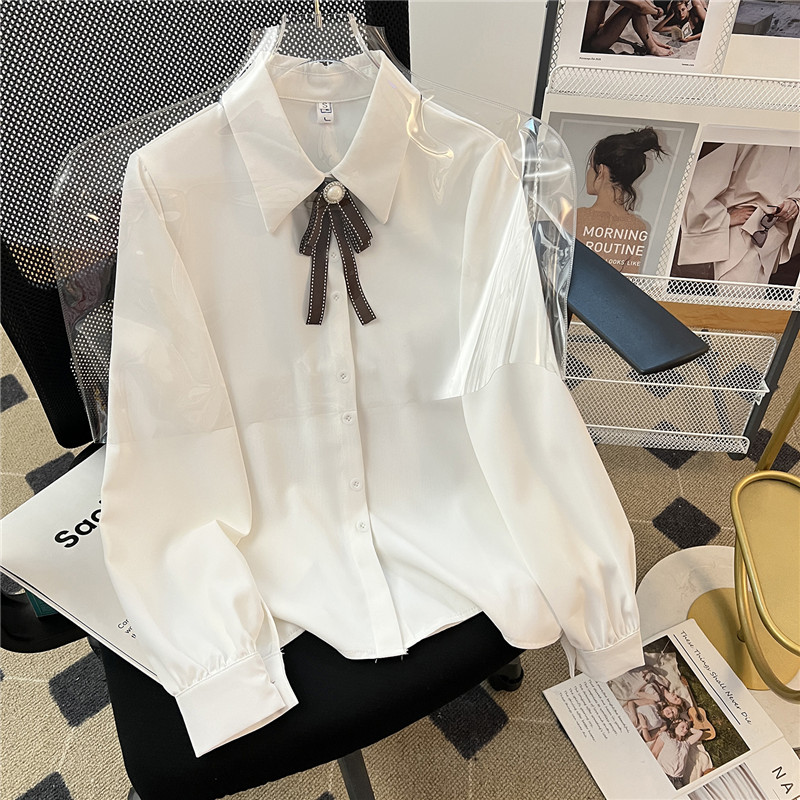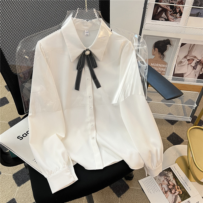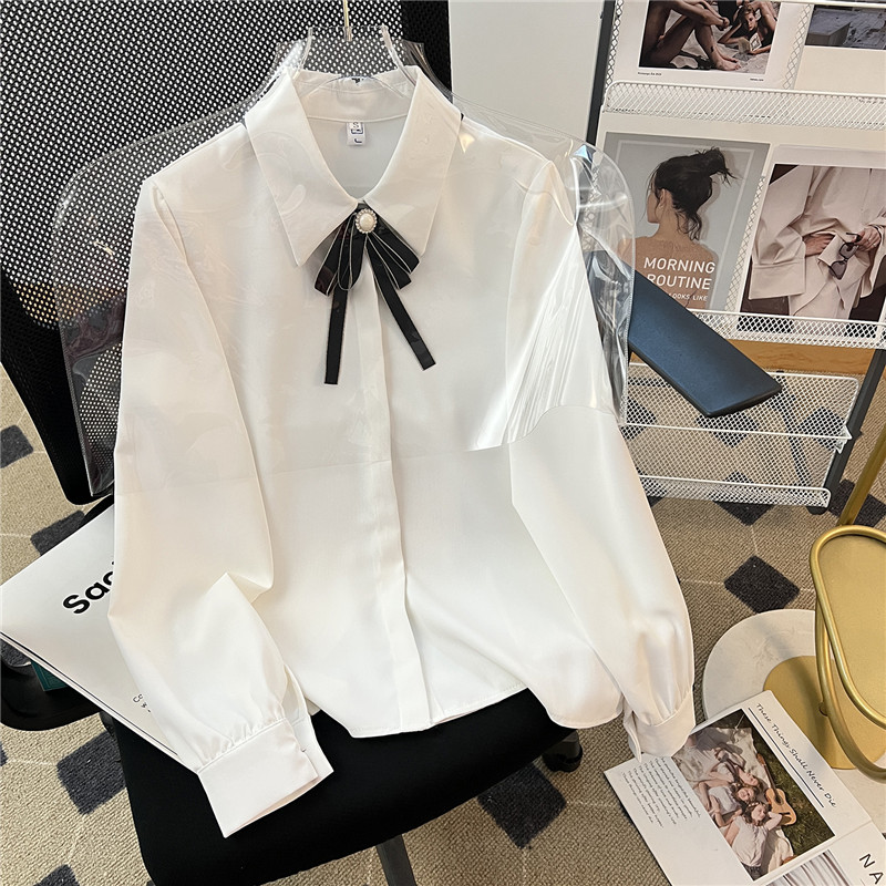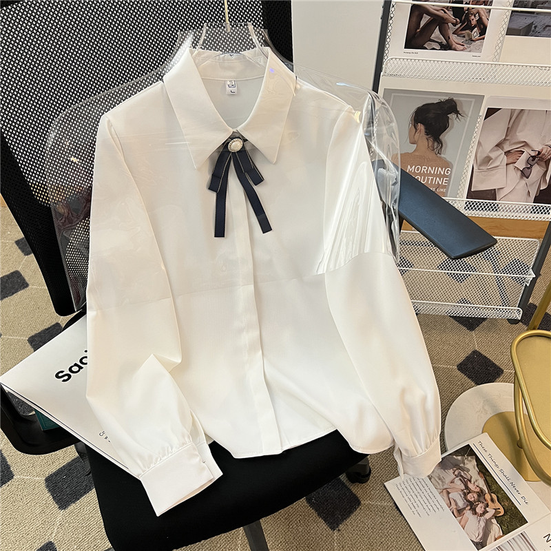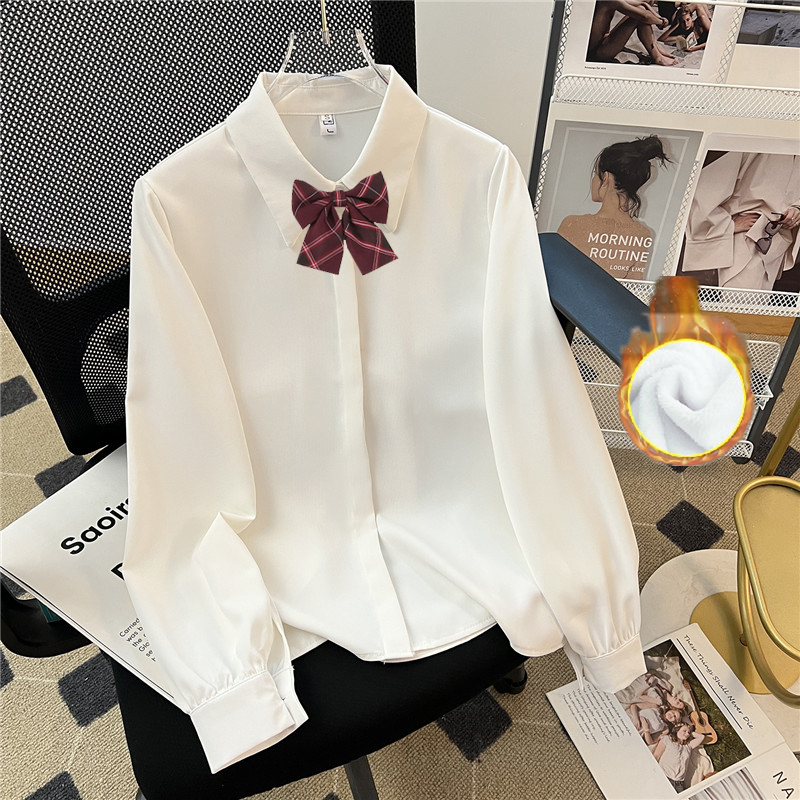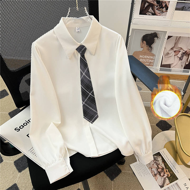 화이트 셔츠 여성 전문 긴팔 봄, 가을, 겨울 24 새로운 쉬폰 인터뷰 공식 셔츠 바지 기모 탑스토어 가기