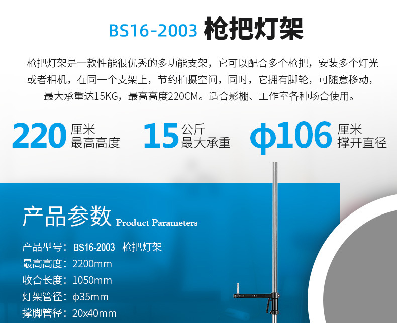 • 2.2 m 건 핸들 브래킷 표준 단일 건 핸들