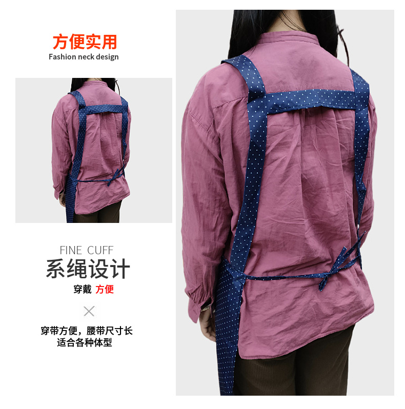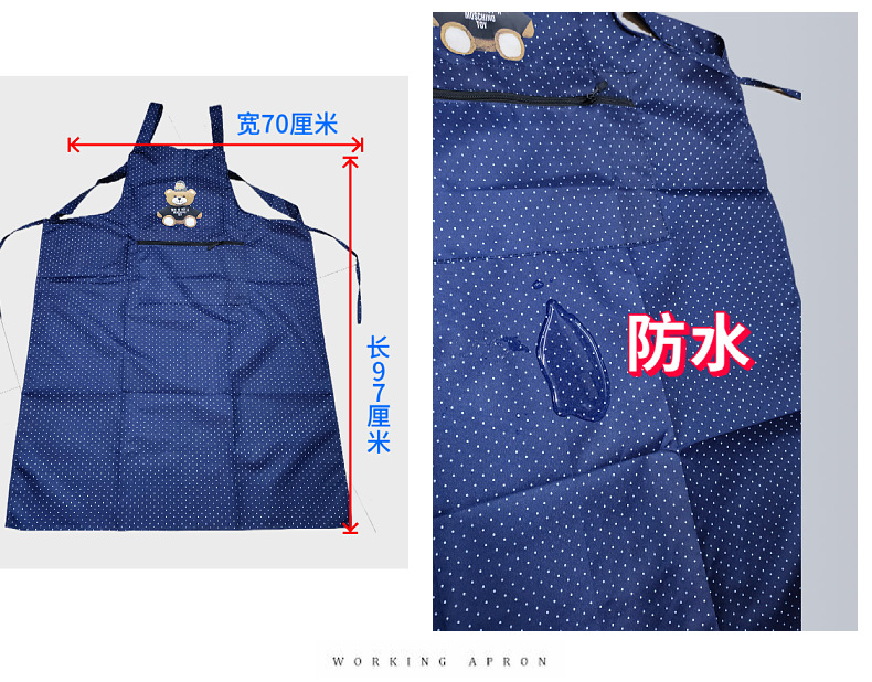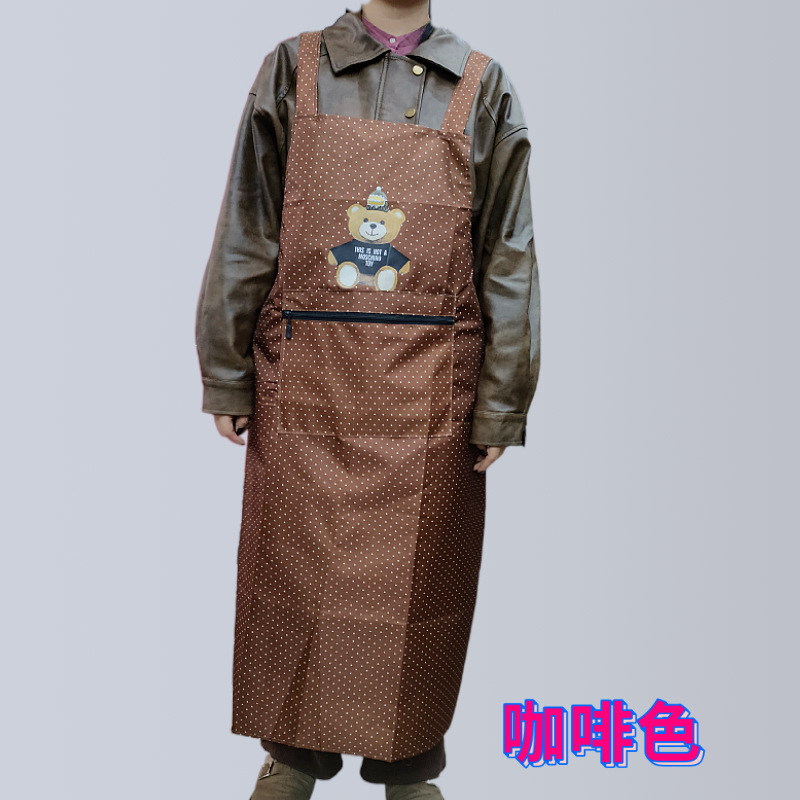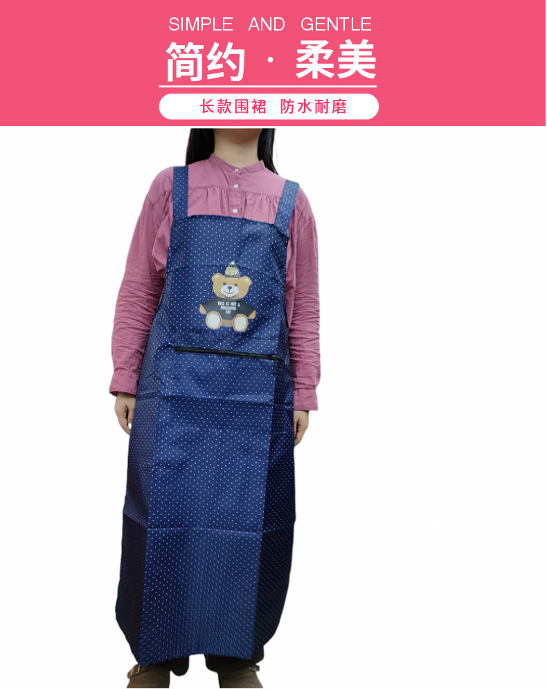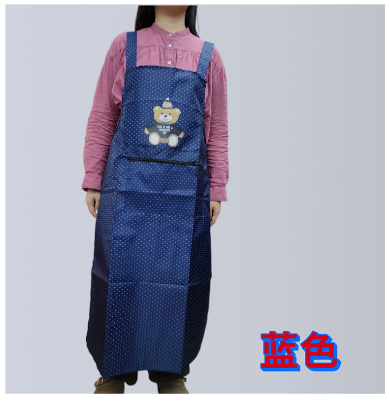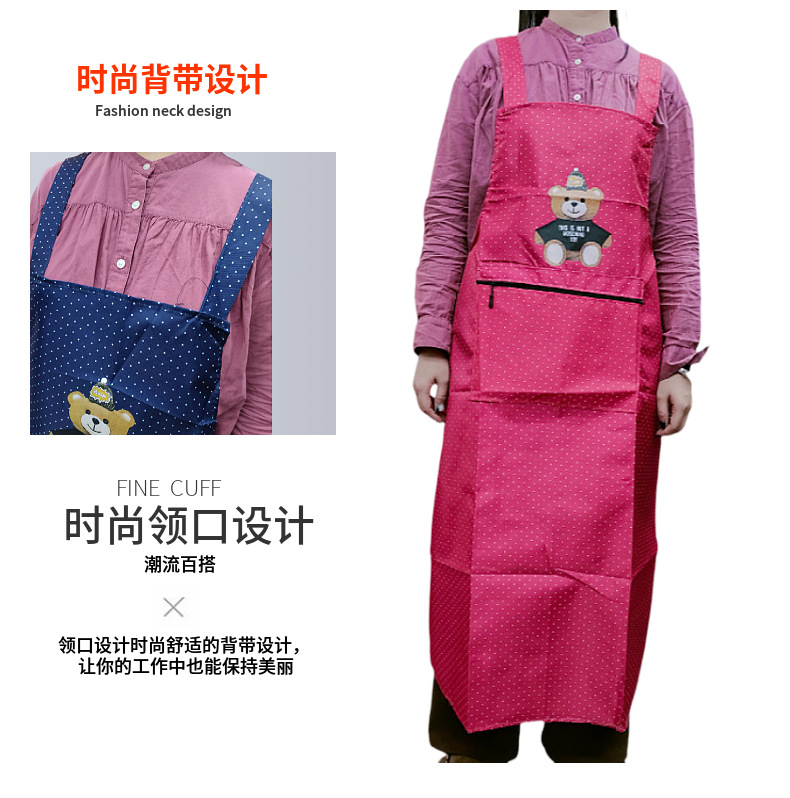 새로운 방수 앞치마, 롱 스타일, 도트 무늬, 지퍼 포켓, 가정용, 노동 보호, 기름 방지, 오염 방지, 끈이 떨어지지 않는 앞치마스토어 가기