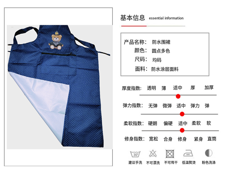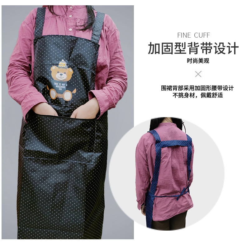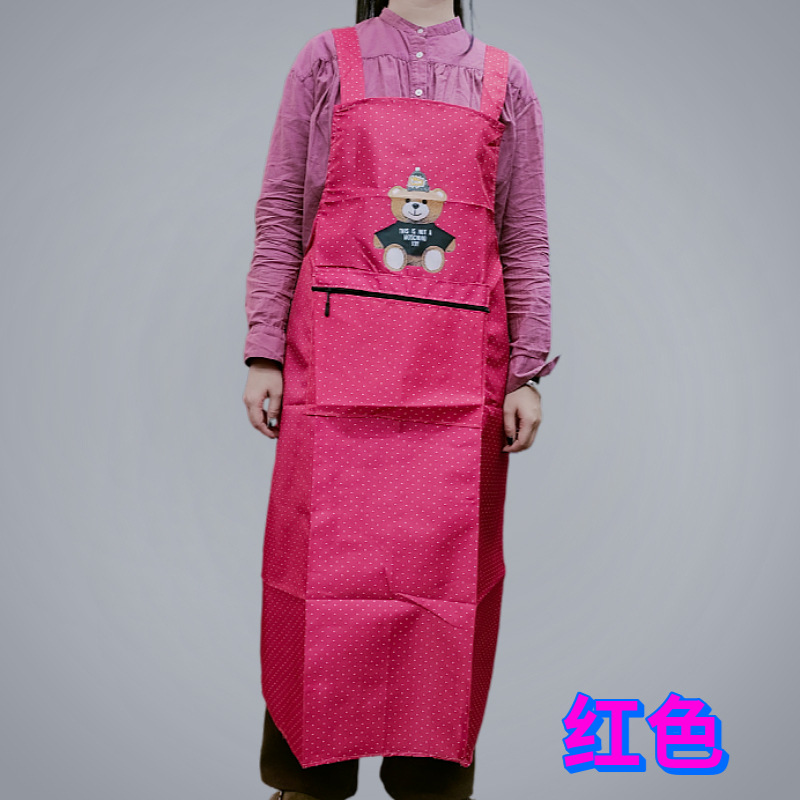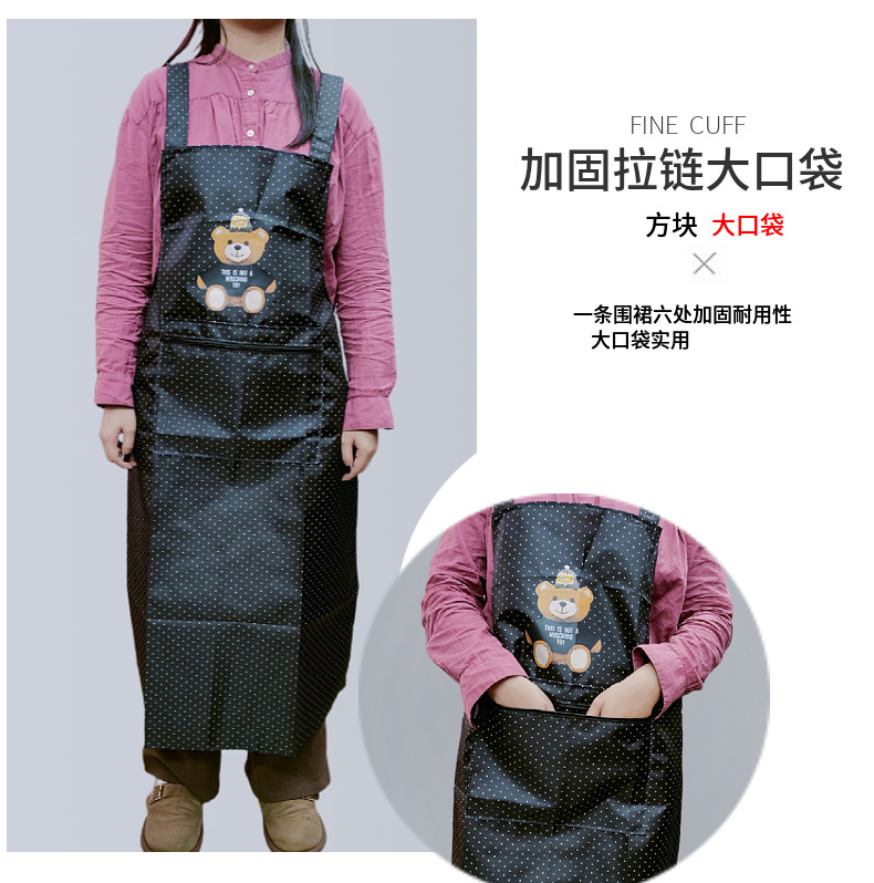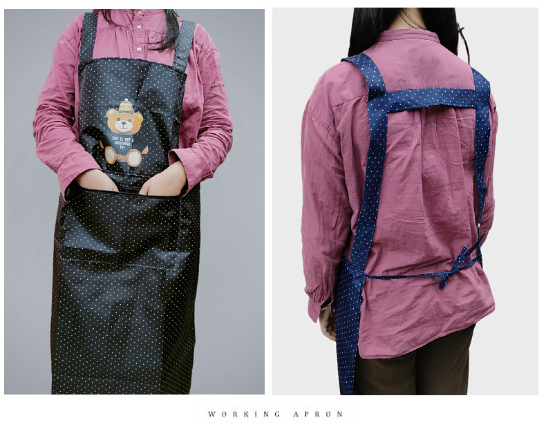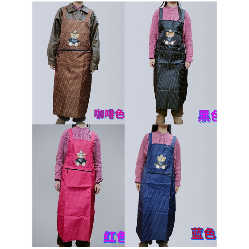 새로운 방수 앞치마, 롱 스타일, 도트 무늬, 지퍼 포켓, 가정용, 노동 보호, 기름 방지, 오염 방지, 끈이 떨어지지 않는 앞치마스토어 가기