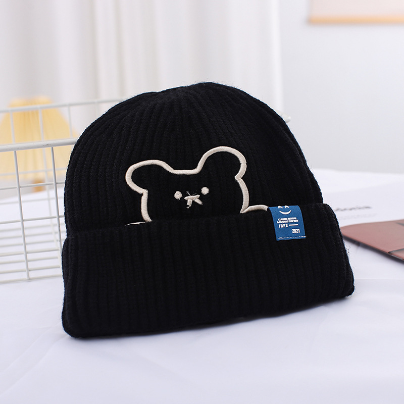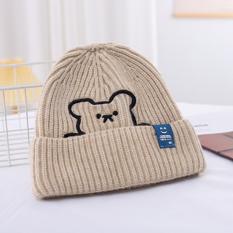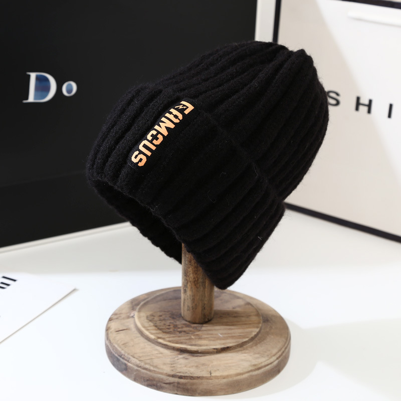 겨울 모자 여자 한국식 올매치 패션 롱 라벨 울 모자 겨울 인터넷 연예인 따뜻한 귀 보호 닫힌 발가락 니트 모자스토어 가기