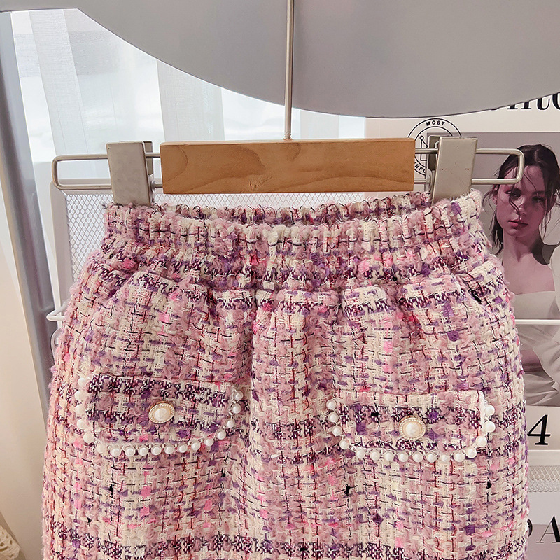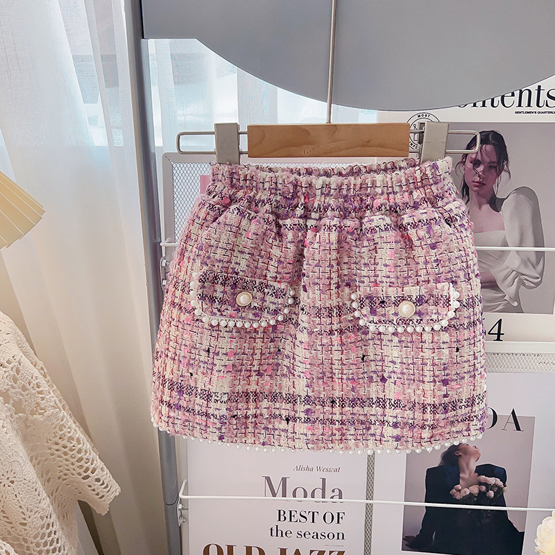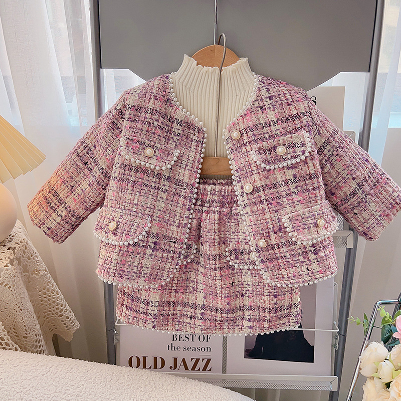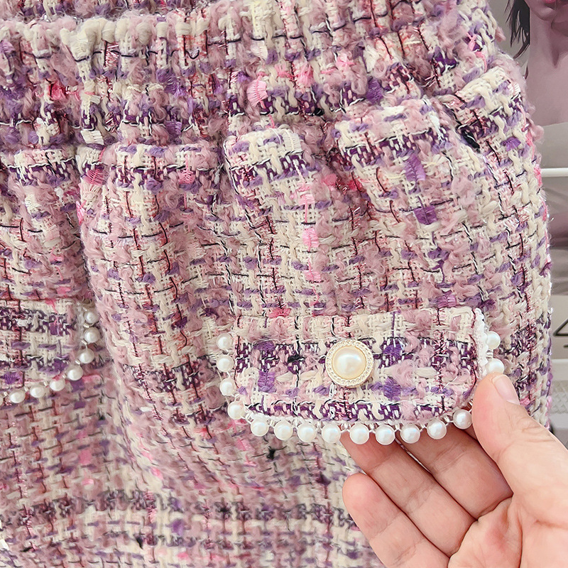 소녀 샤넬 스타일 세트 겨울 새로운 서양식 세련된 기질면 패딩 코트 짧은 스커트 투피스 세트스토어 가기