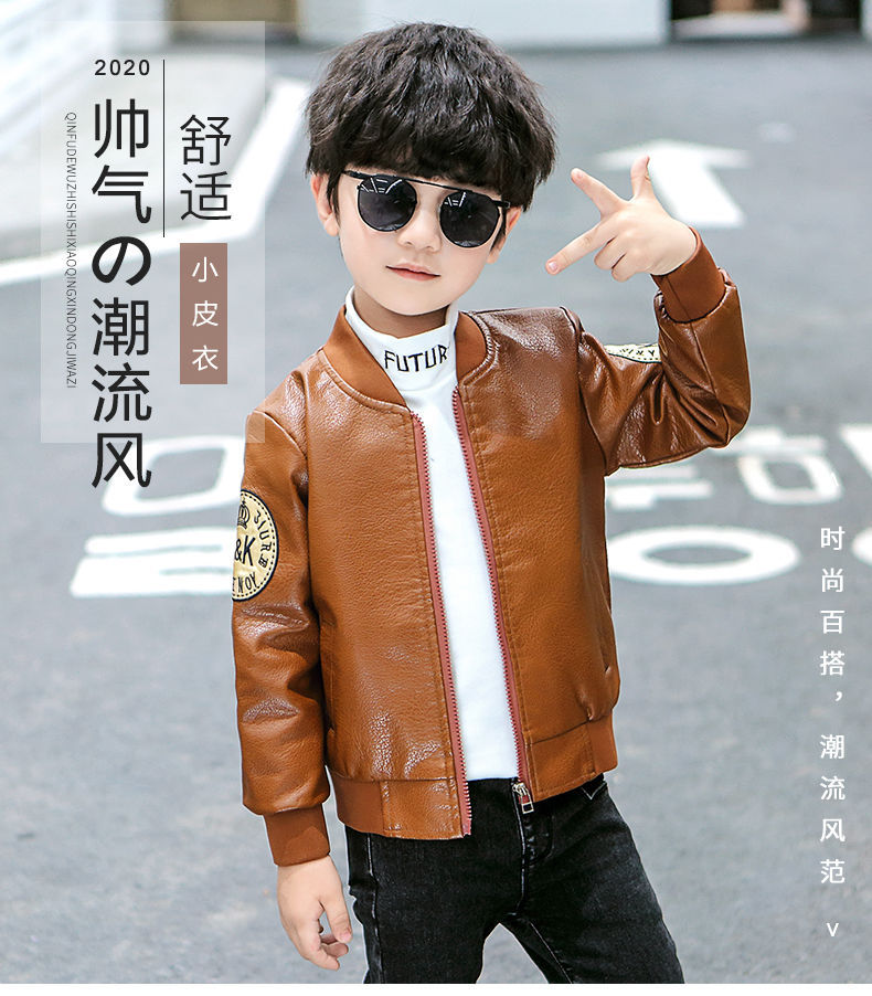 남아 가을 겨울 가죽 재킷 신상품, 중소 어린이용 멋진 플리스 안감 PU 두꺼운 소년용 상의 재킷, 트렌디한 긴팔스토어 가기