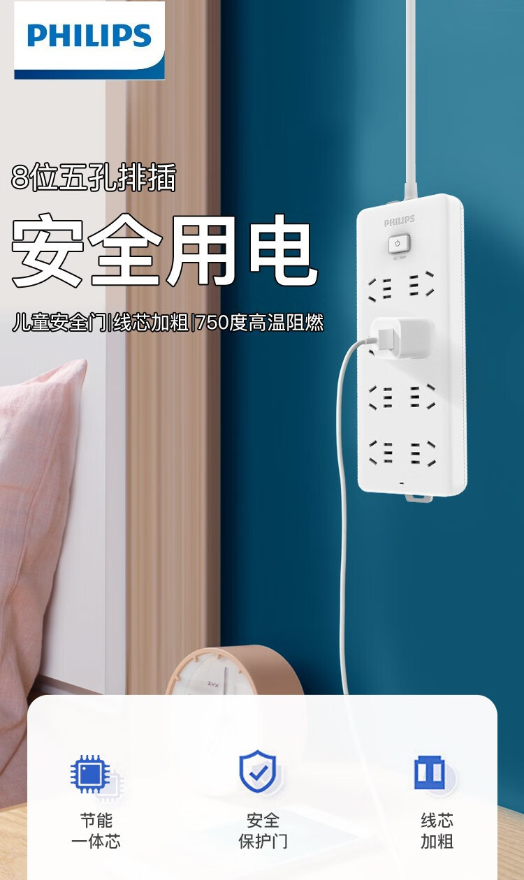 필립스 새로운 국가 표준 안전 소켓 8 비트 5 홀 일반 제어 어린이 보호 도어 플러그 보드 플러그 배선 보드 3 m스토어 가기