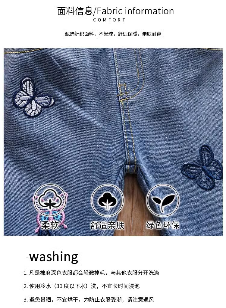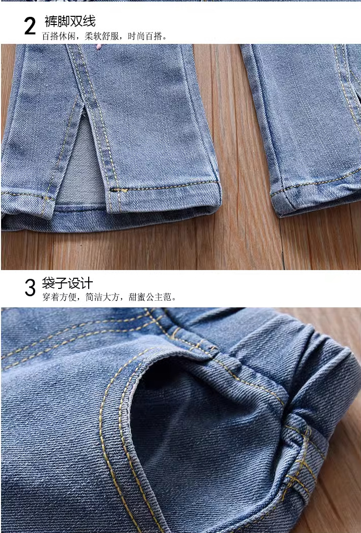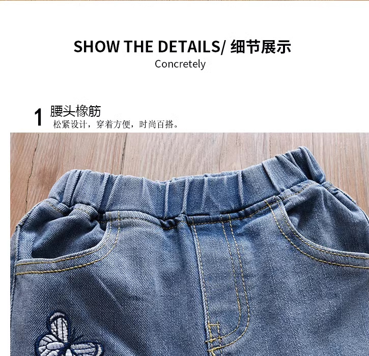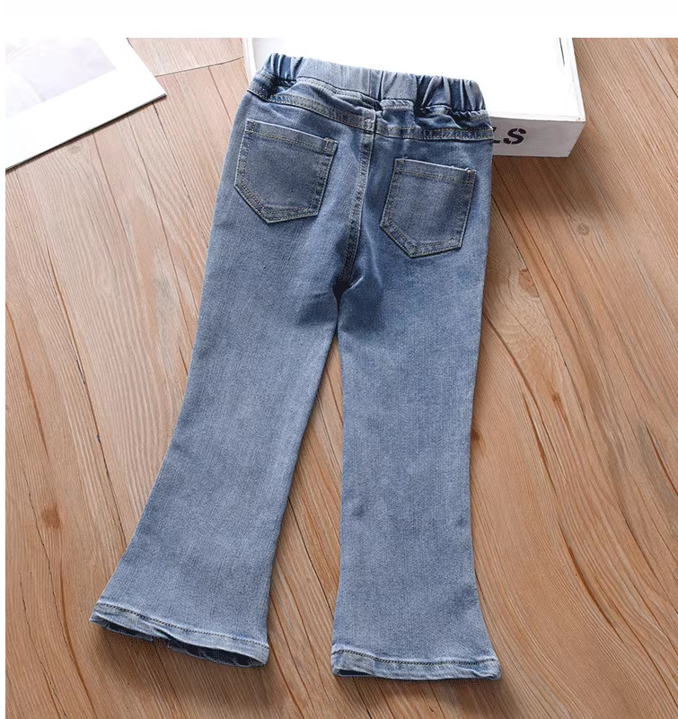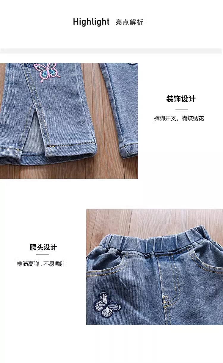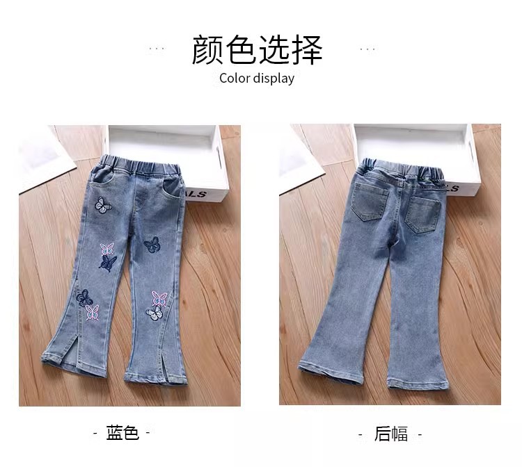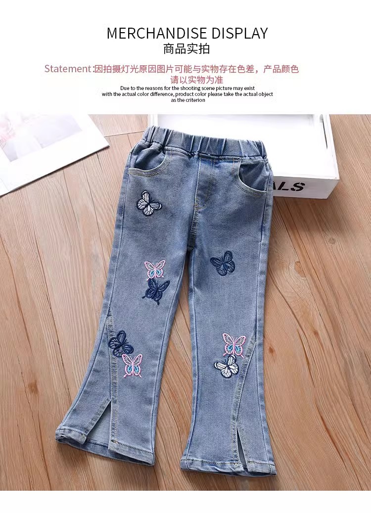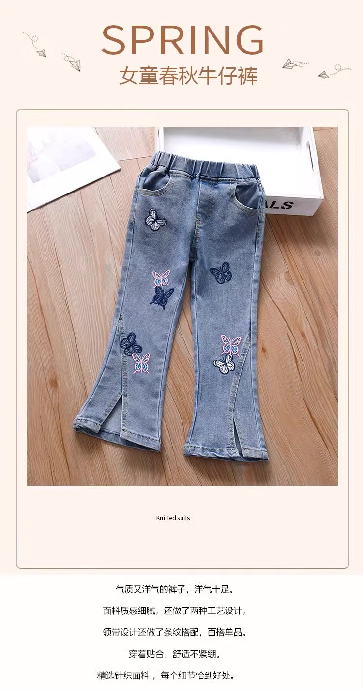 여아 부츠컷 청바지, 봄, 가을 한국 스타일 캐주얼 아동용 나비 자수 바지, 여아용 얇고 귀여운 플레어 팬츠스토어 가기