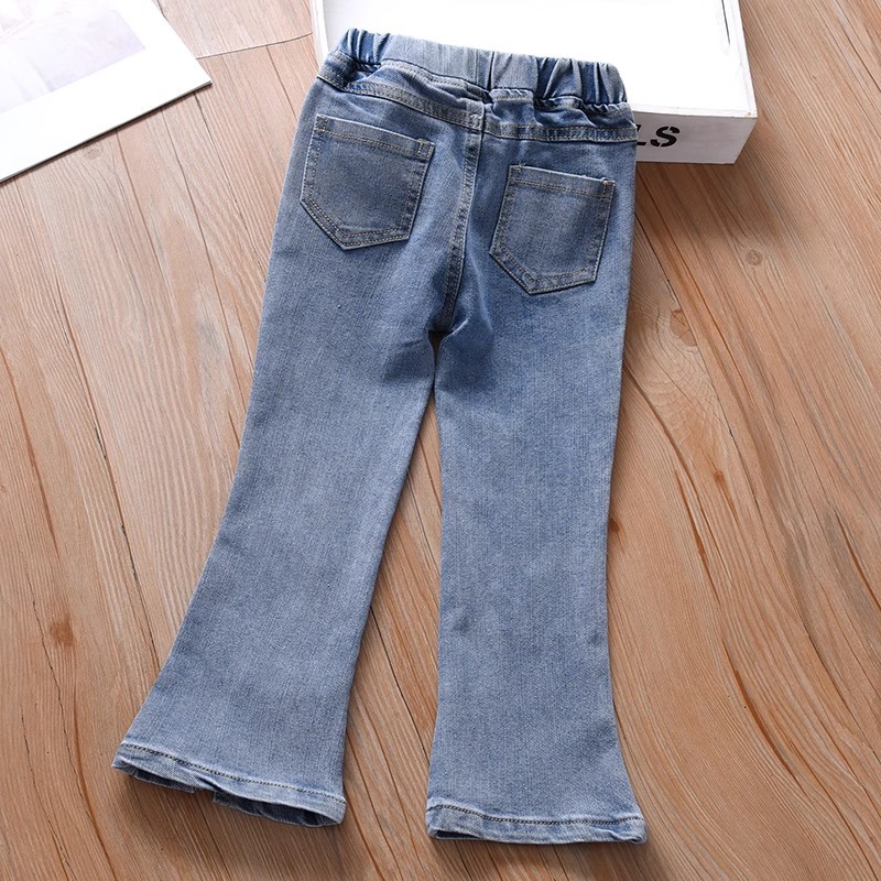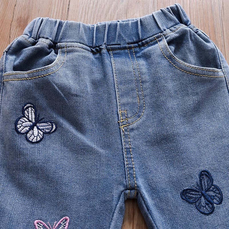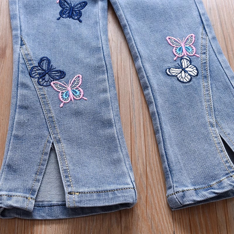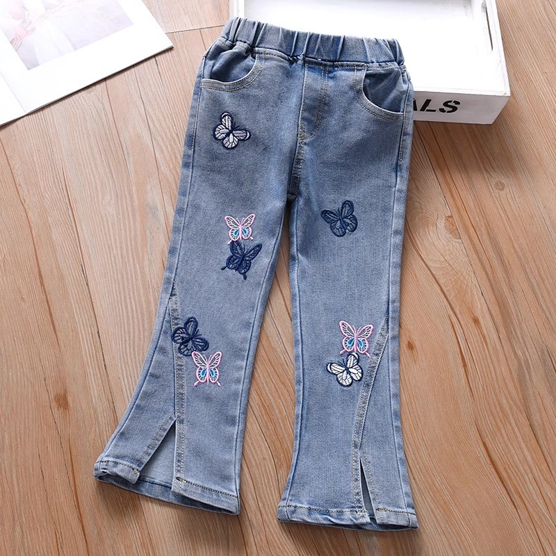 여아 부츠컷 청바지, 봄, 가을 한국 스타일 캐주얼 아동용 나비 자수 바지, 여아용 얇고 귀여운 플레어 팬츠