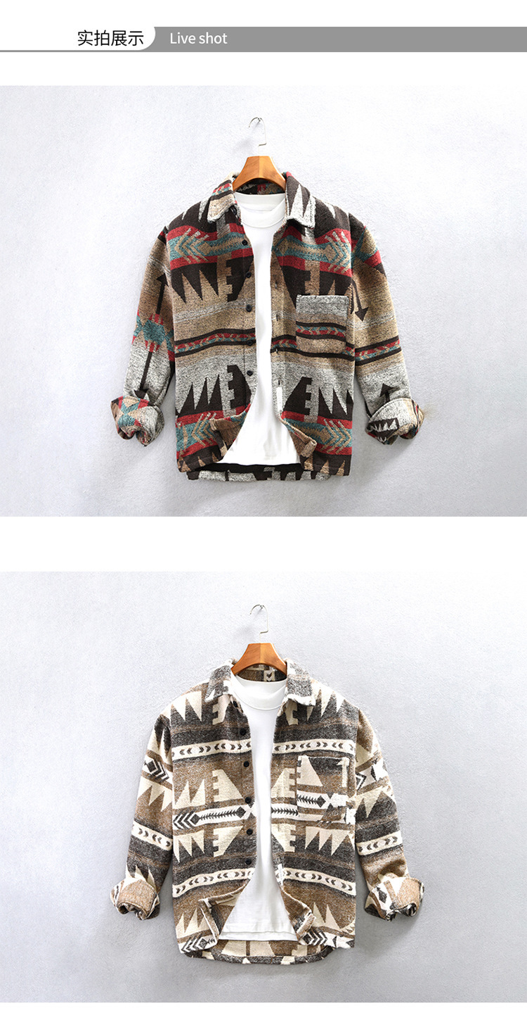 Ami Kaji 미국식 프린트 샌딩 긴팔 모직 셔츠 남자의 겨울 느슨한 두꺼운 따뜻한 꽃 셔츠 재킷스토어 가기