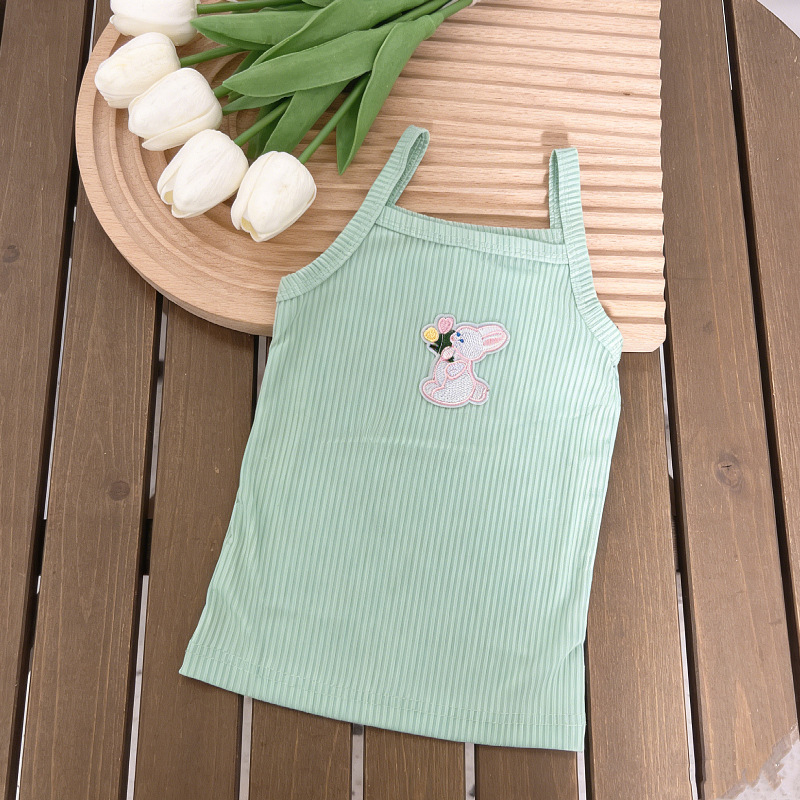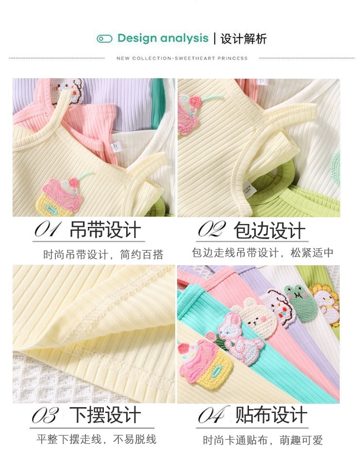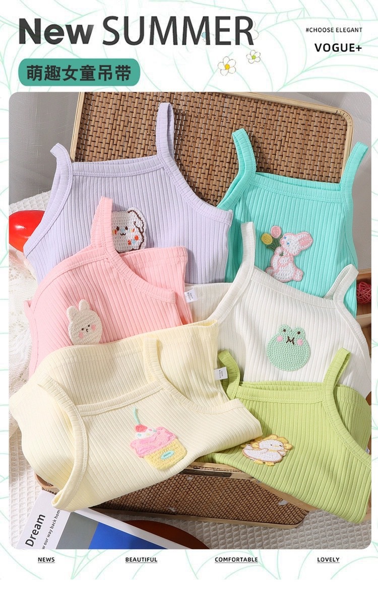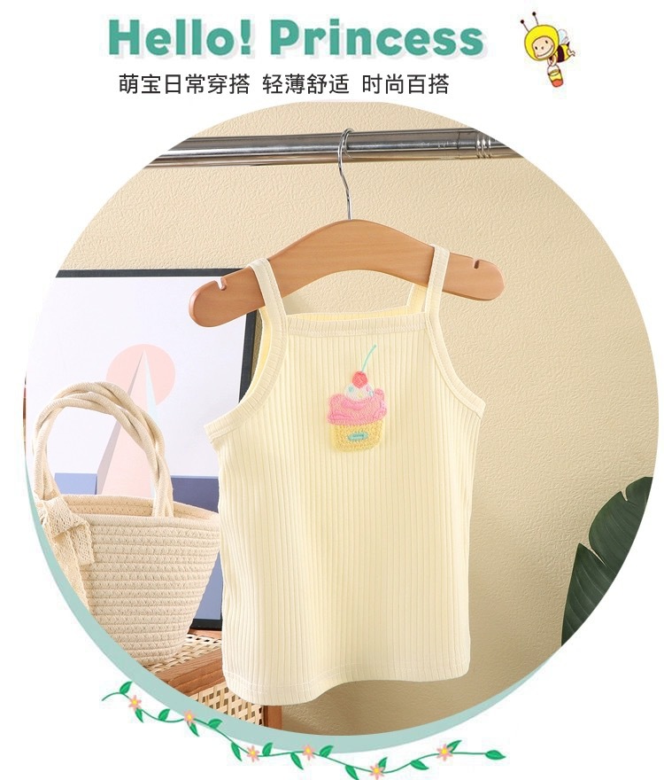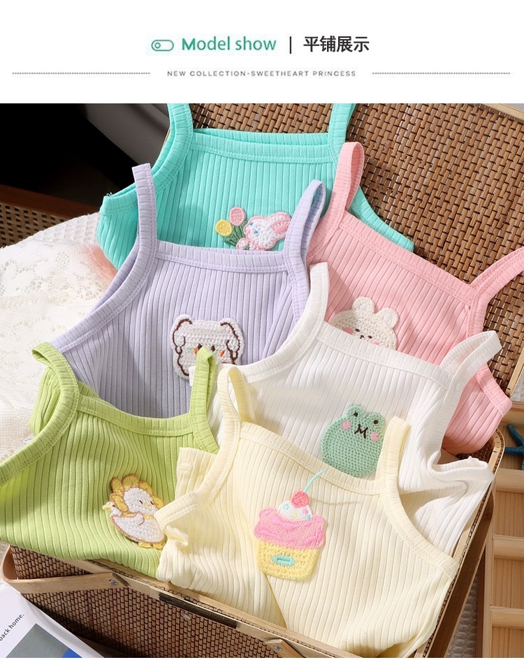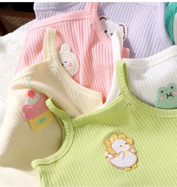 여아 캔디 컬러 여름옷 2026 여아 민소매 상의 만화 자수 니트 슬림핏 신축성 조끼스토어 가기