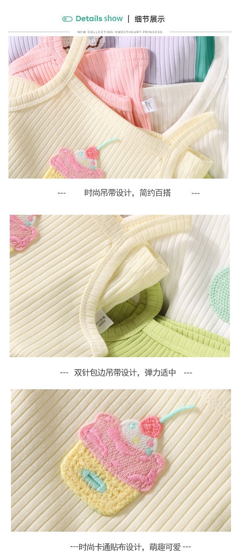 여아 캔디 컬러 여름옷 2026 여아 민소매 상의 만화 자수 니트 슬림핏 신축성 조끼