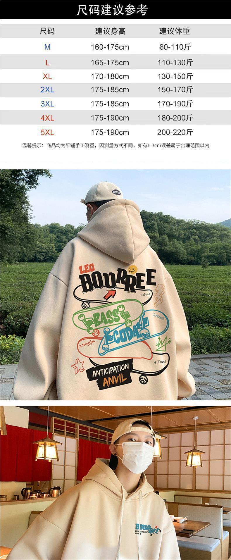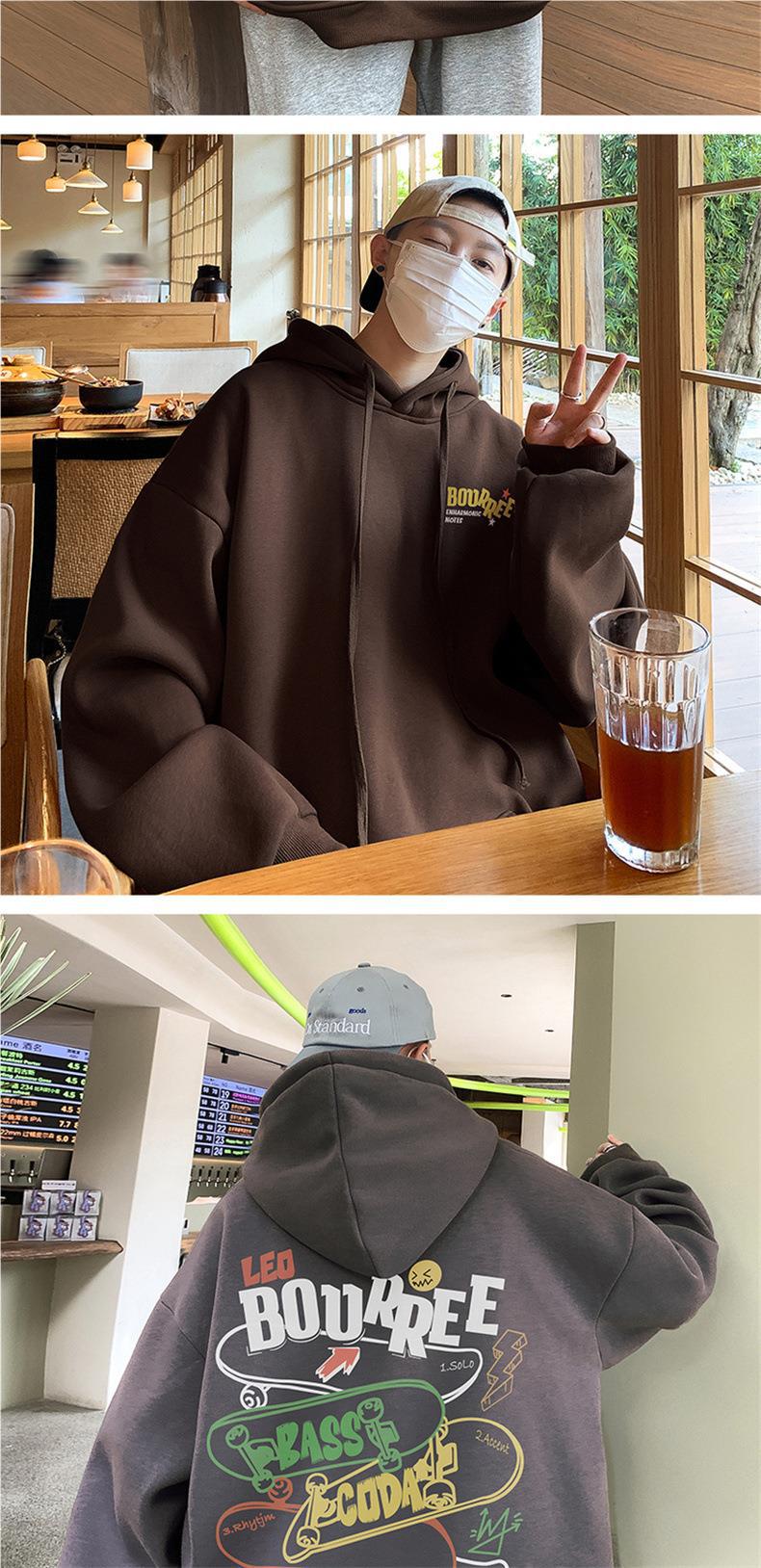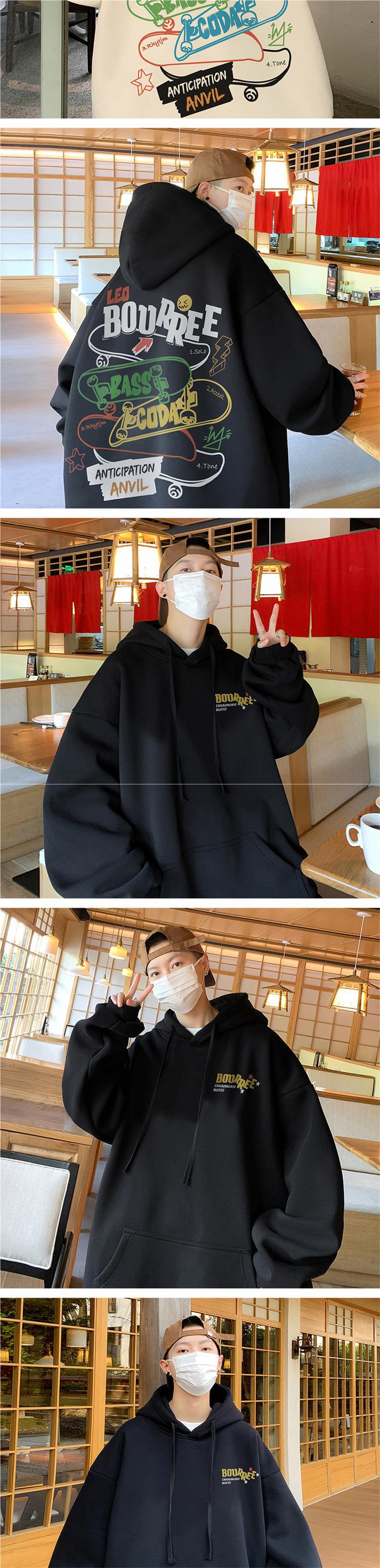 낙서 후드 스웨터 남성용 가을과 겨울 기모 미국 복고풍 400g 헤비 패션 브랜드 오버 사이즈 코트