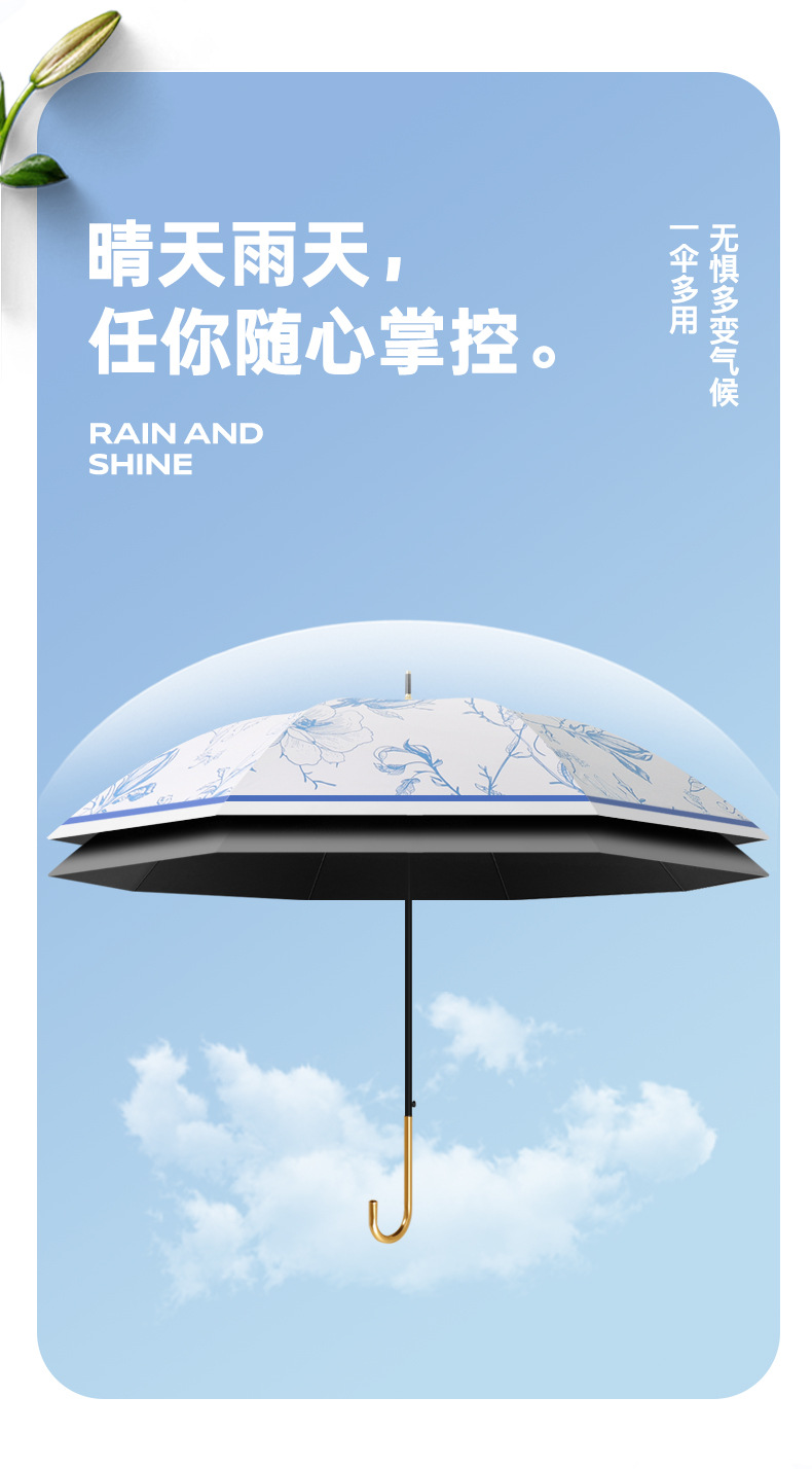 2024 새로운 스트레이트 블랙 고무 우산 남성과 여성을위한 긴 손잡이 양산 우산 비즈니스 가죽 작은 곡선 손잡이 맑고 비오는 우산
