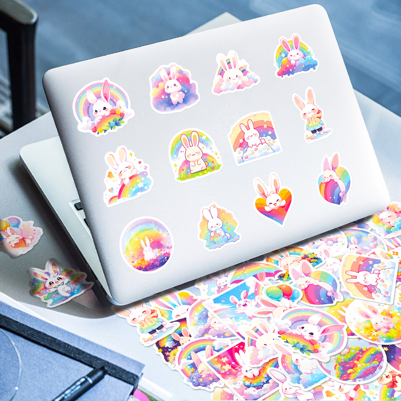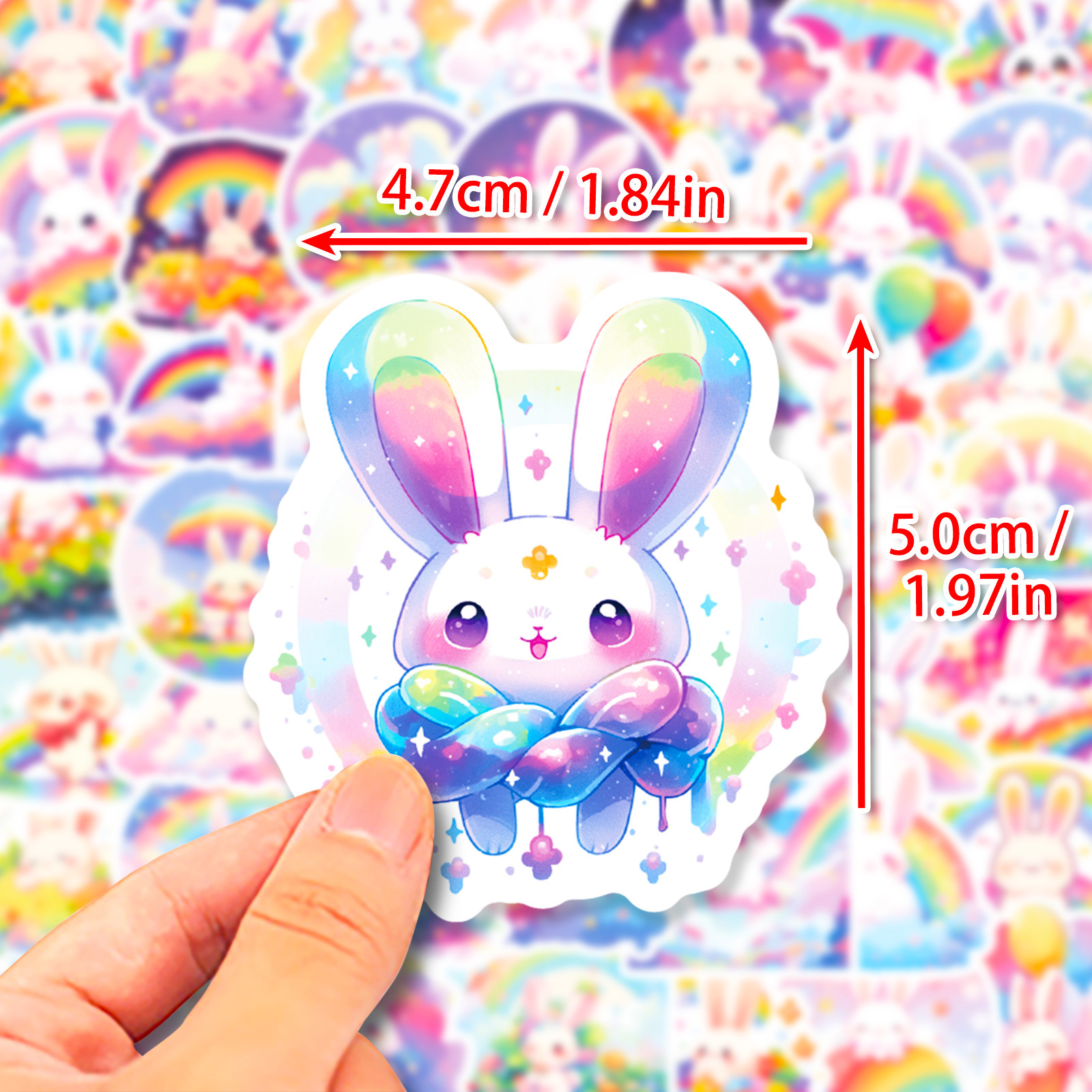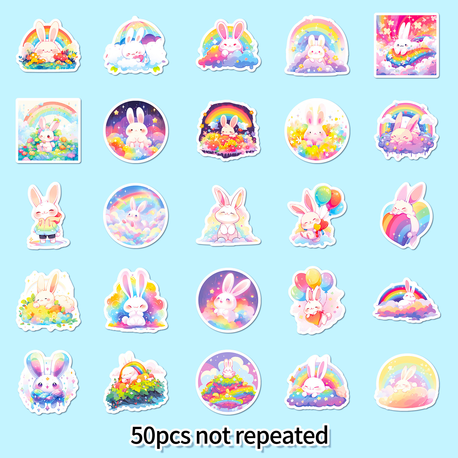 귀여운 무지개 토끼 만화 어린이 스티커 50장 대박 세일, 해외 직구, 힐링 동물, 유치원 보상 장식
