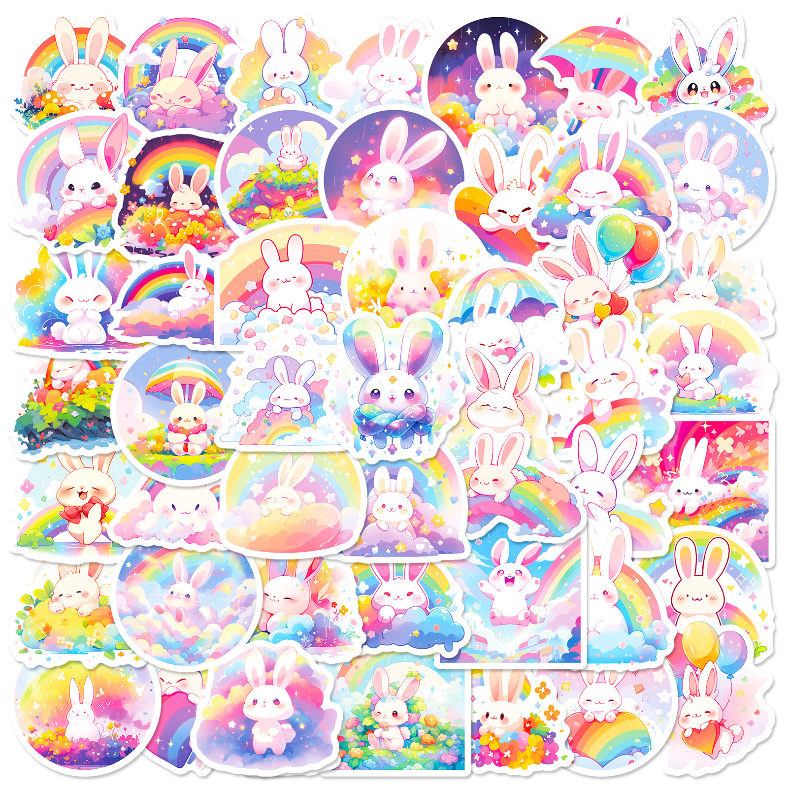 귀여운 무지개 토끼 만화 어린이 스티커 50장 대박 세일, 해외 직구, 힐링 동물, 유치원 보상 장식스토어 가기