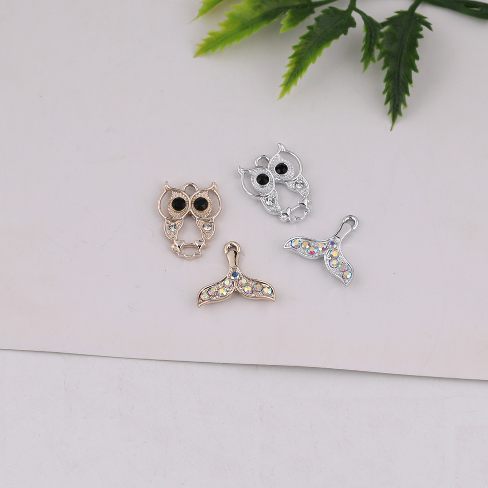 합금 다이아몬드 인어 꼬리 올빼미 펜던트 DIY 수제 팔찌 목걸이 보석 소재 액세서리