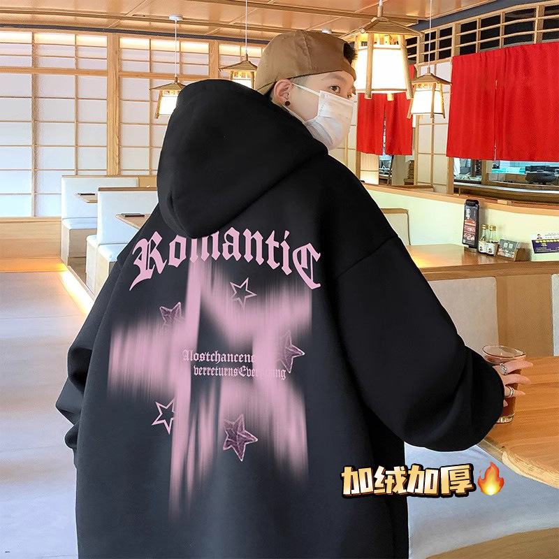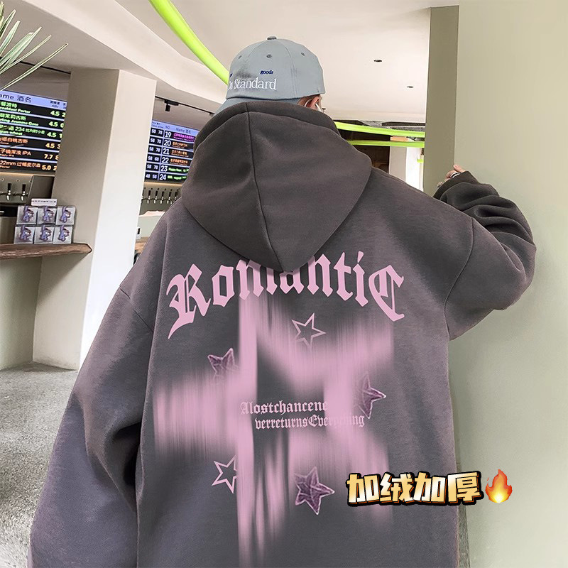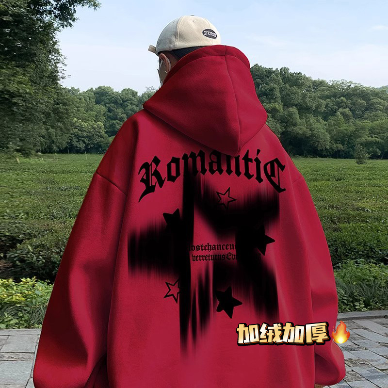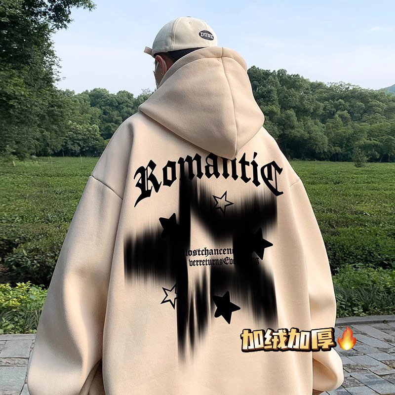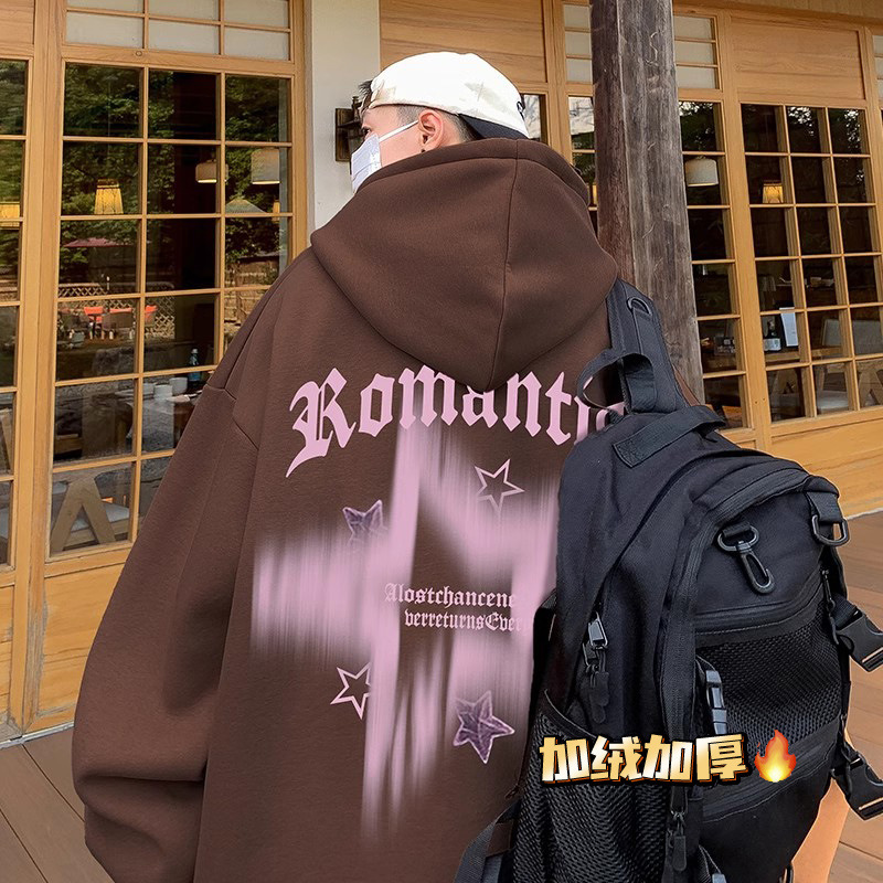 아메리칸 스타일 레트로 헤비 후드 스웨트 남성용 가을과 겨울 벨벳 두꺼운 오버 사이즈 패션 브랜드 하이 스트리트 루즈 재킷스토어 가기
