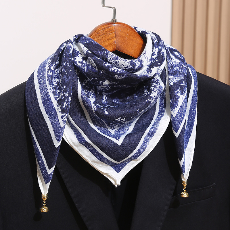 • 파란색과 흰색 꽃 + 금속 자석 버클 스카프