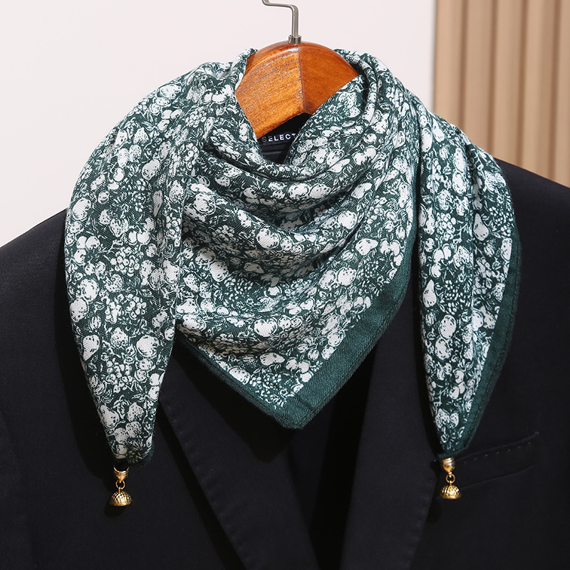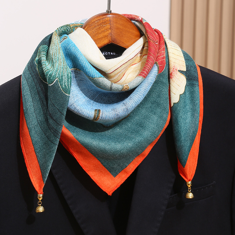• 깃털 네잎 클로버 + 금속 자석 버클 스카프