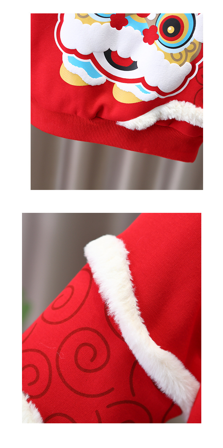 TZ210-lion 댄스 카드 울 스트라이프 스웨터 세트 축제 새해 인사말 옷 소년 한푸 탕 세트 중국 스타일 아기 옷