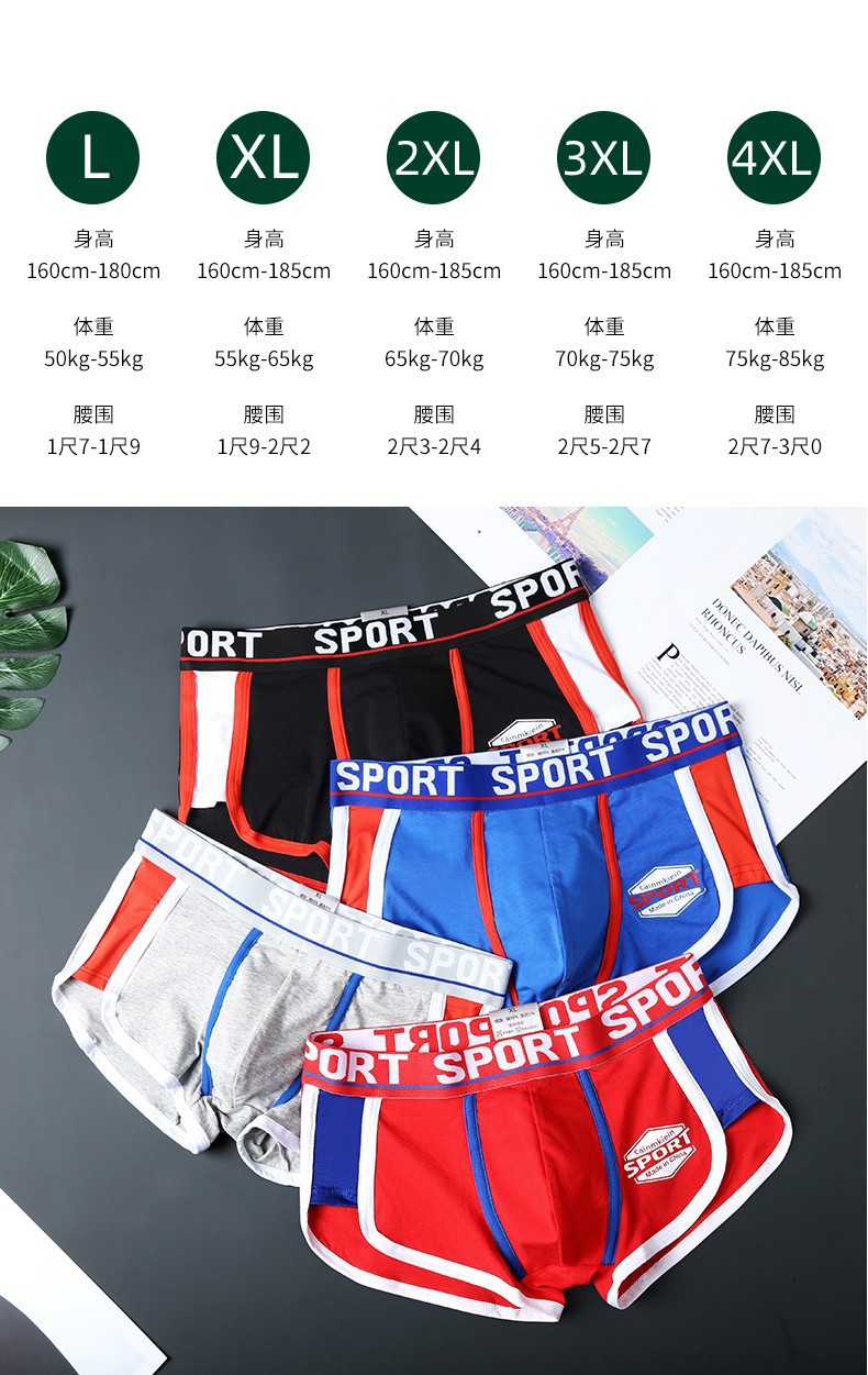 국가 동향 새로운 순면 남성 속옷 복서 부티크 속옷 남성 젊은 학생 스포츠 복서 반바지 남성