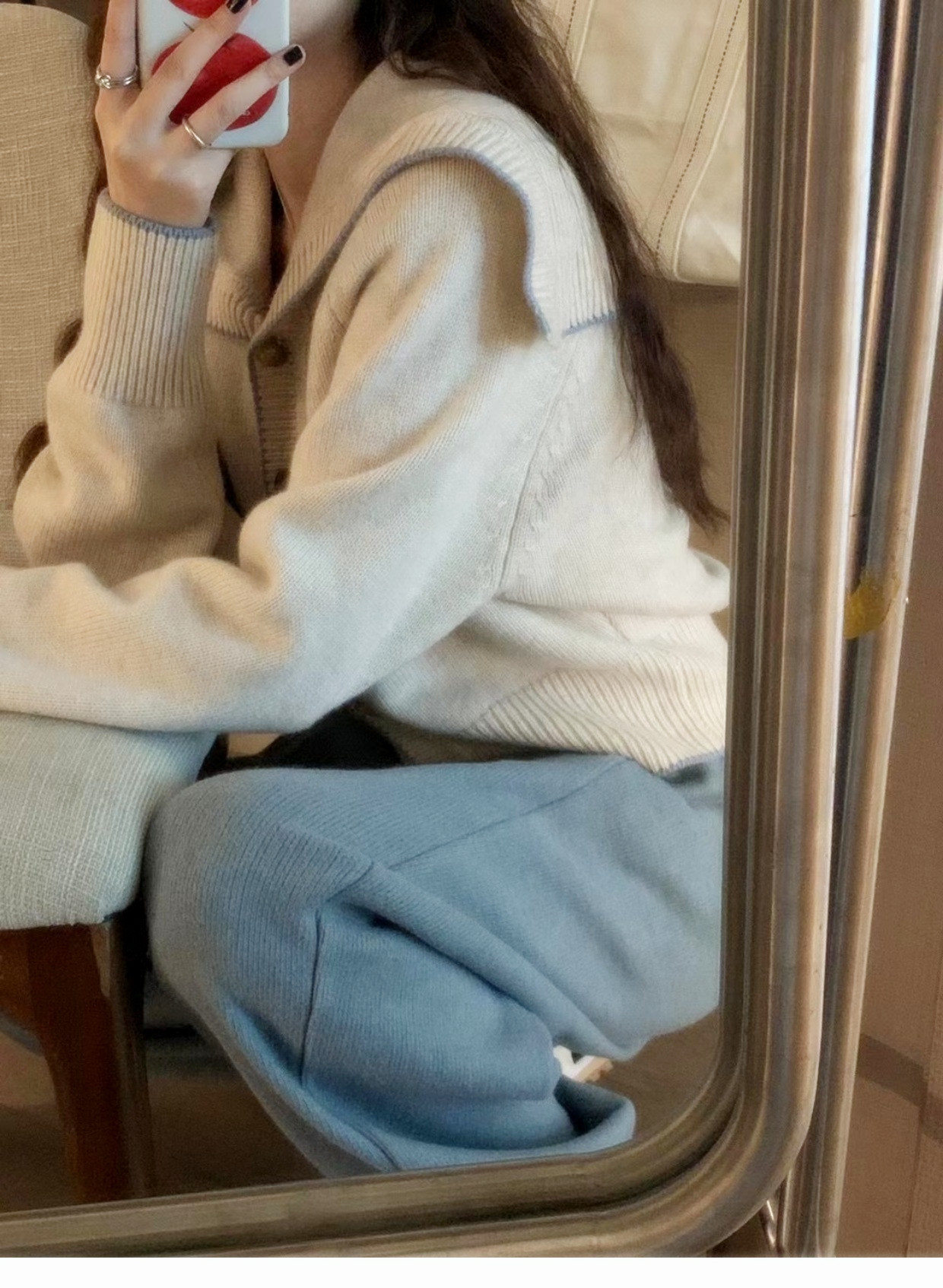 새로운 모직 스웨터 여성 네이비 칼라 스웨터 두꺼운 카디건 버튼 니트 느슨한 컬러 매칭 바닥 탑 코트 크로스 테두리스토어 가기