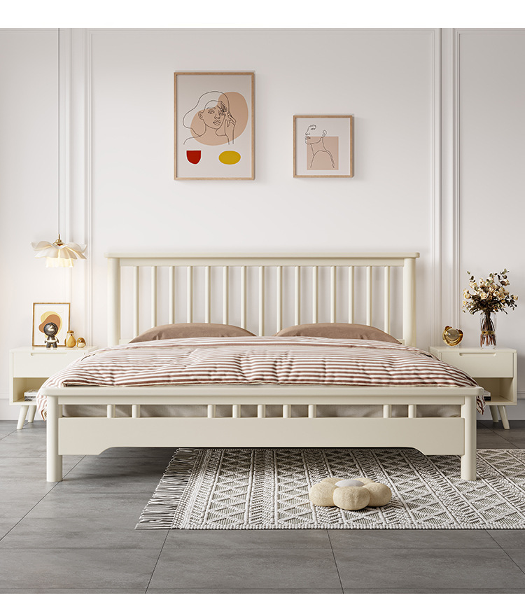 북유럽 복고풍 단단한 나무 침대 마스터 침실 1.8 m 더블 침대 현대 간단한 작은 아파트 1.5 m 윈저 침대 보관 침대스토어 가기