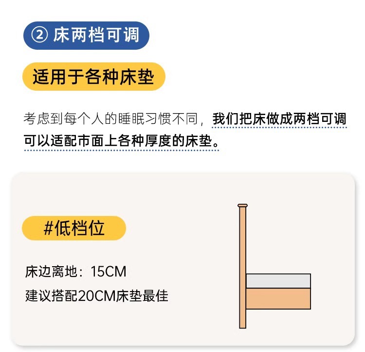 • 침대 + 20cm 매트리스 + 침대 옆 테이블 1 개