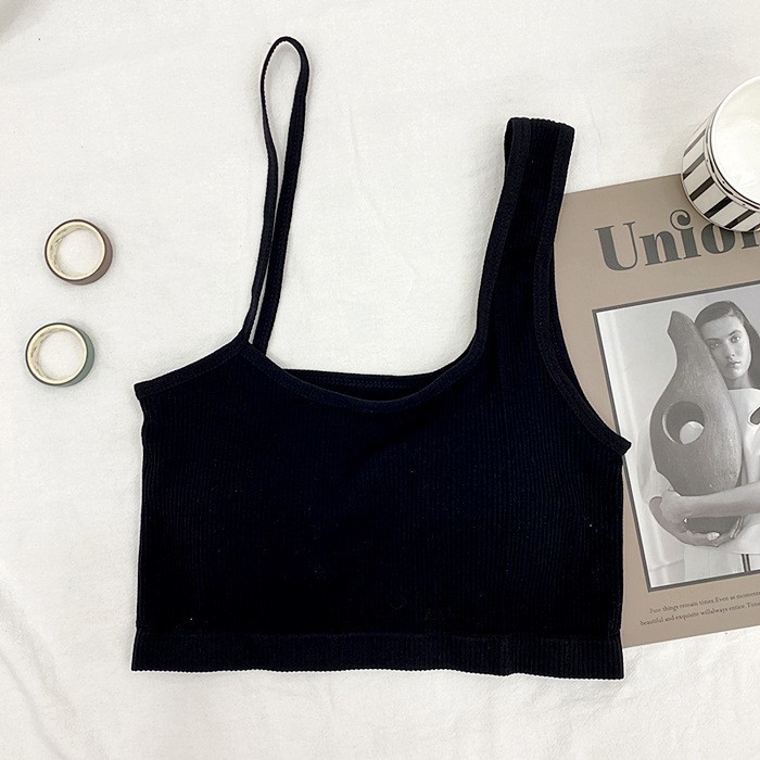 뜨거운 소녀 기울어 진 어깨 홀터넥 넥 슬링 아름다운 등 속옷 올인원 컵 고정 가슴 패드 감싸 인 가슴 겉옷 바닥 조끼 탑스토어 가기