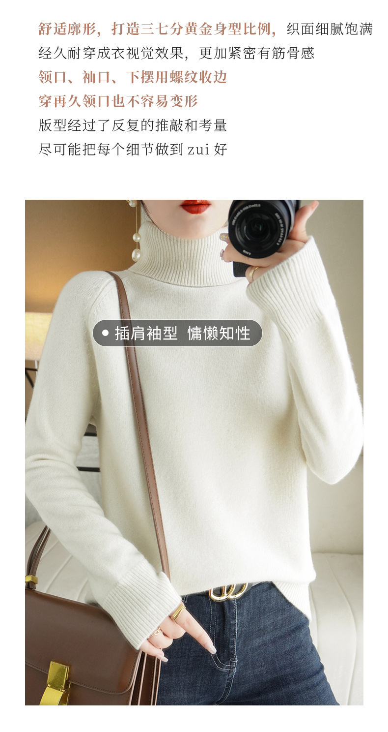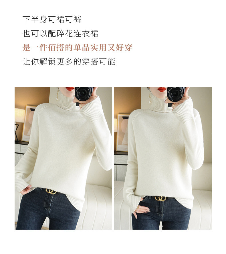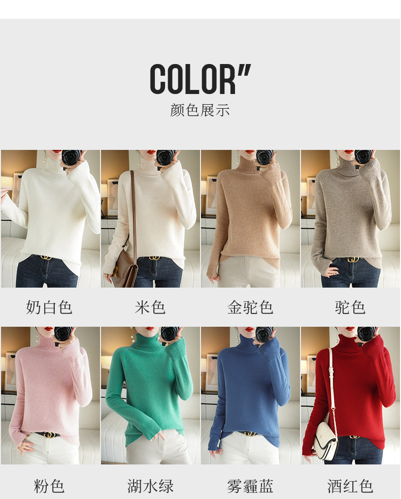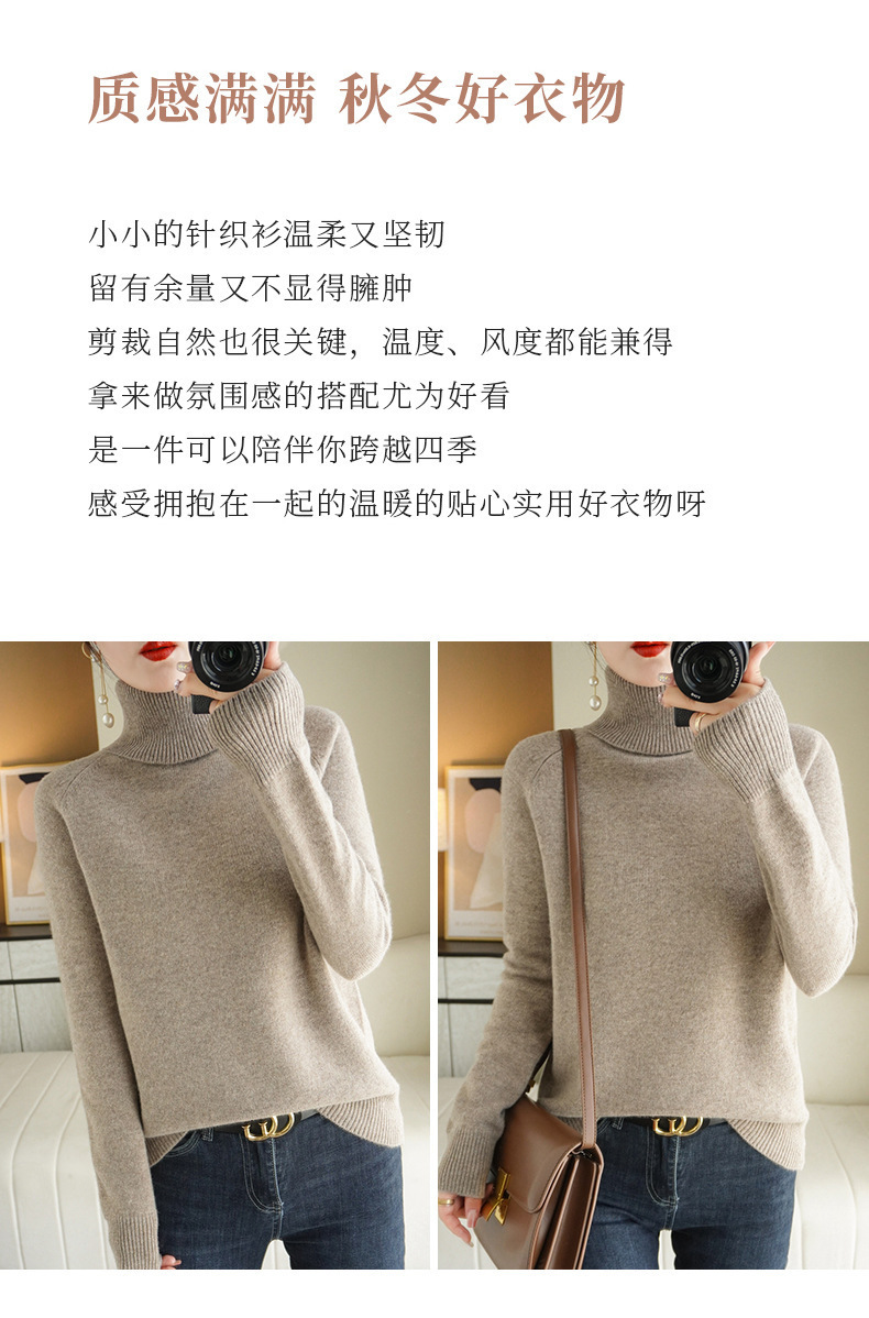 秋冬插肩高翻领针织打底衫女上衣秋长袖高领毛衣女洋气针织上衣