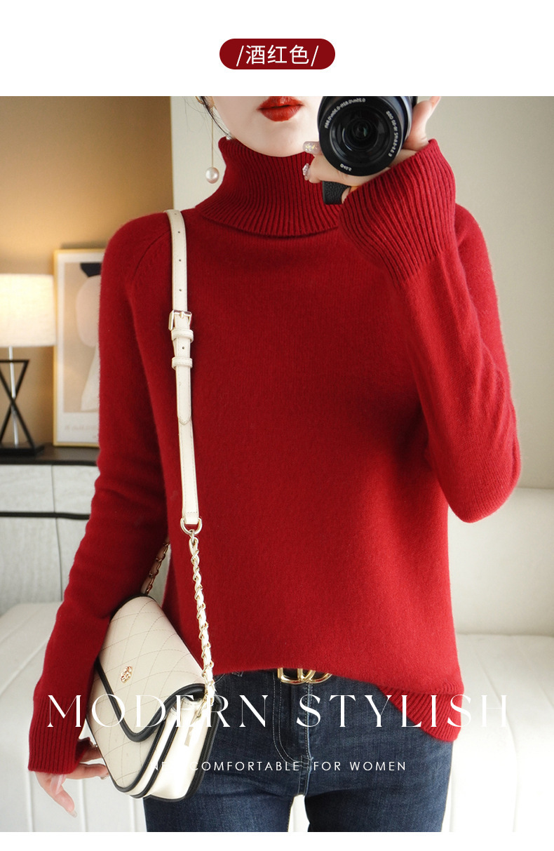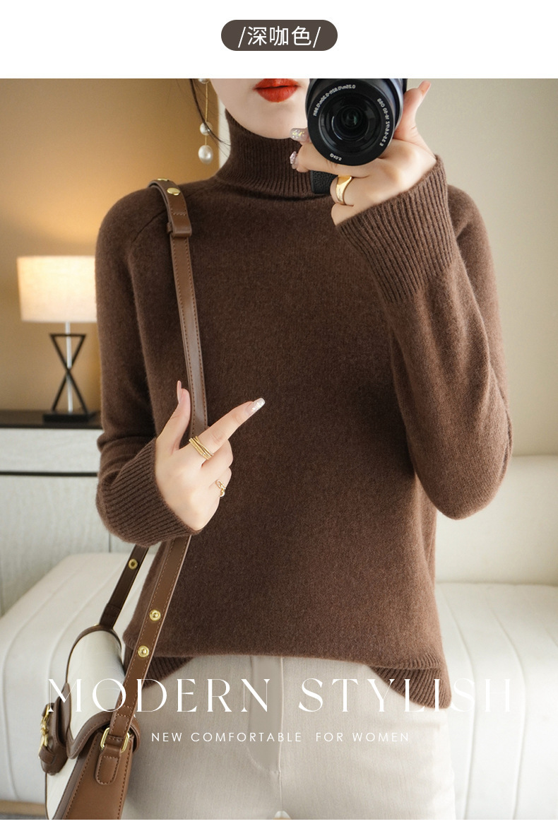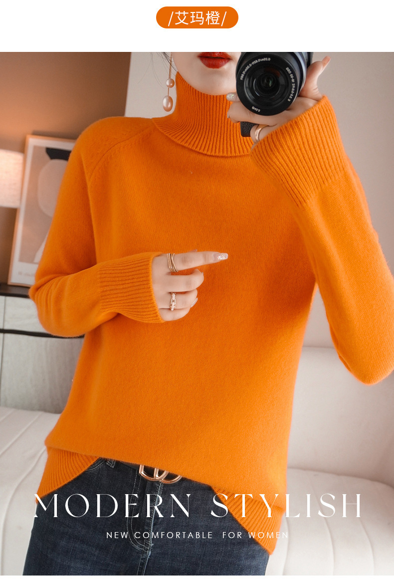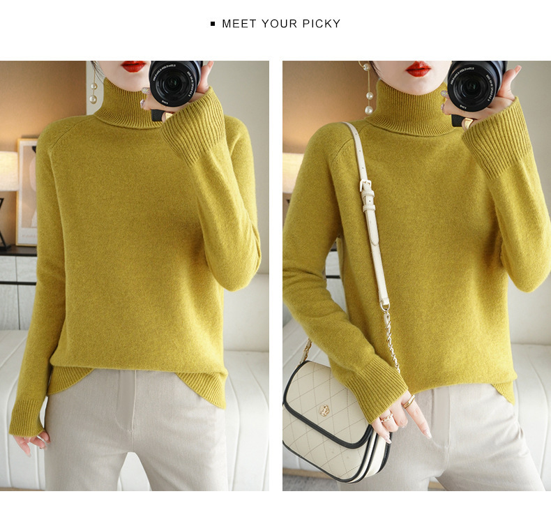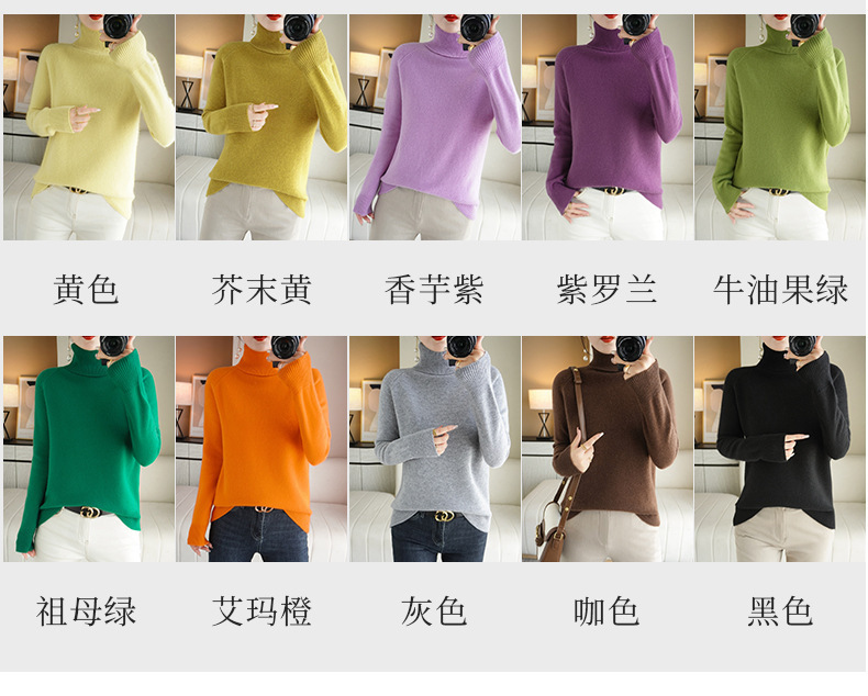 秋冬插肩高翻领针织打底衫女上衣秋长袖高领毛衣女洋气针织上衣