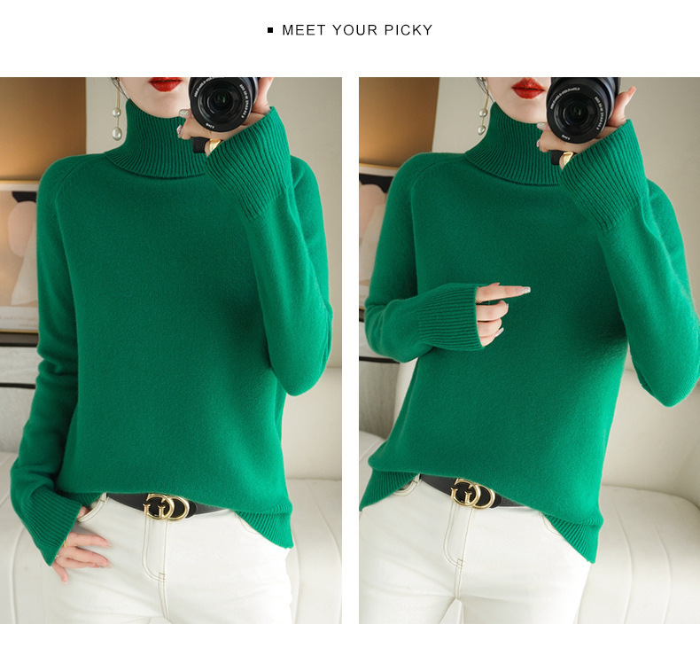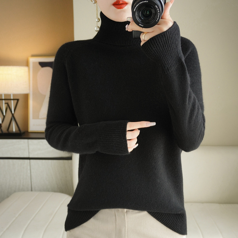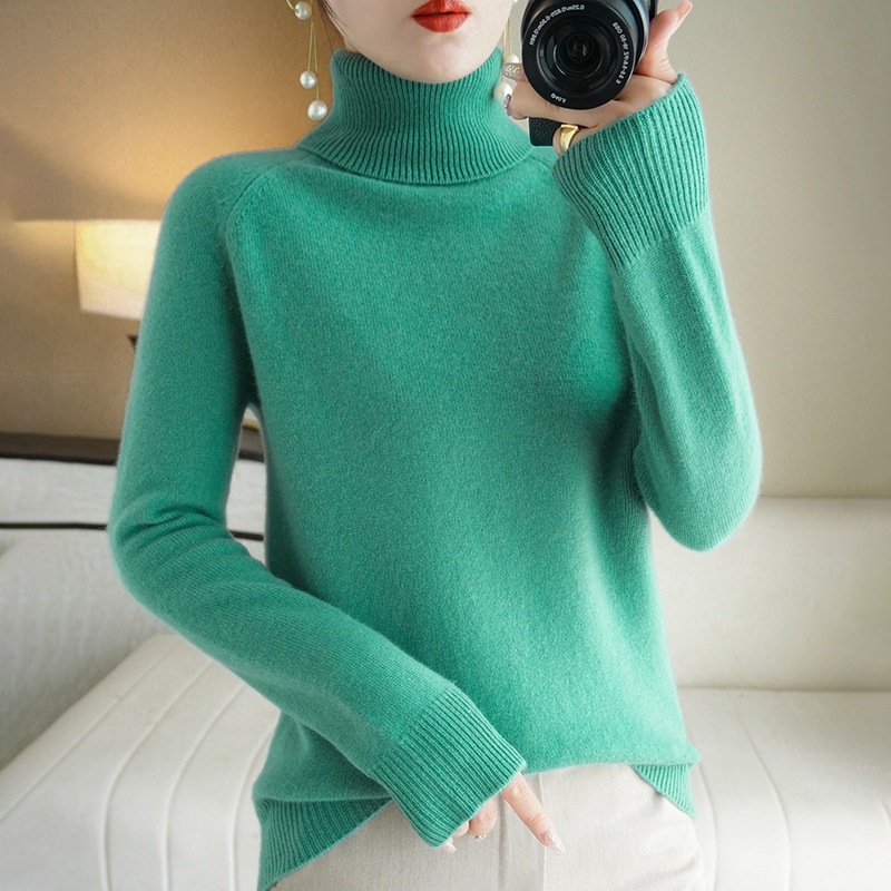 가을과 겨울 새로운 높은 옷깃 스웨터 여성 올 매치 웨스턴 스타일 스웨터 Raglan 긴 소매 터틀넥 바닥